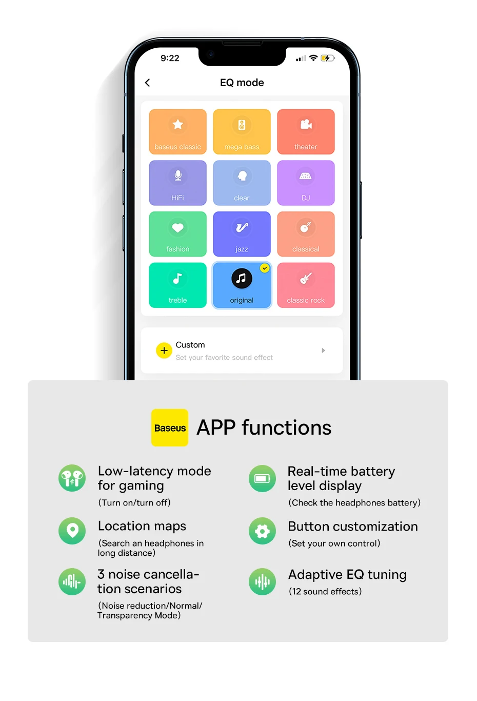 Great phone finish well made and comfortable. But my came crashing in connection with phone and notebook, plus not connect to app baseus. Noise cancellation is shy, but the value is very worth.