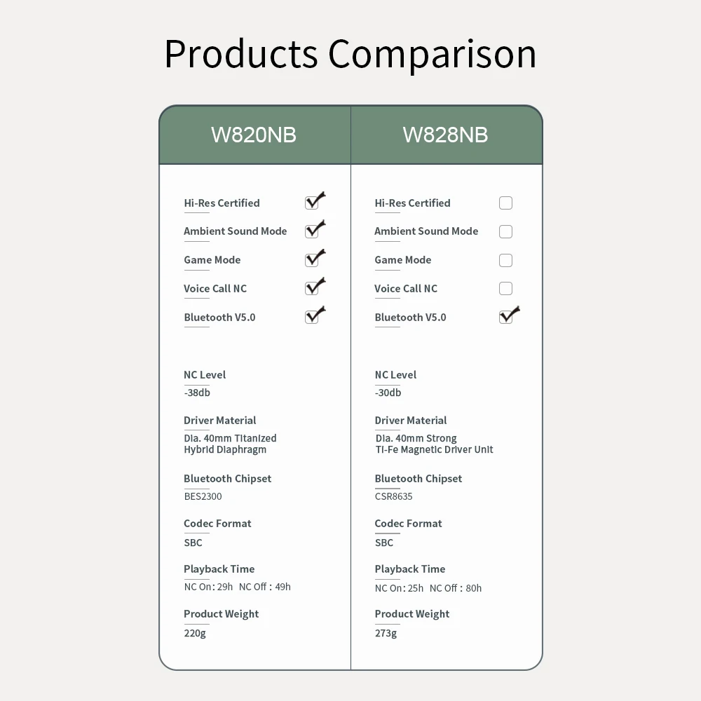 Got a second headphone W820NB because the first bought in Jan/2022 malfunctioned in Oct/2022. The difference is that now not supports AAC codec, only SBC. Hope durability that first.