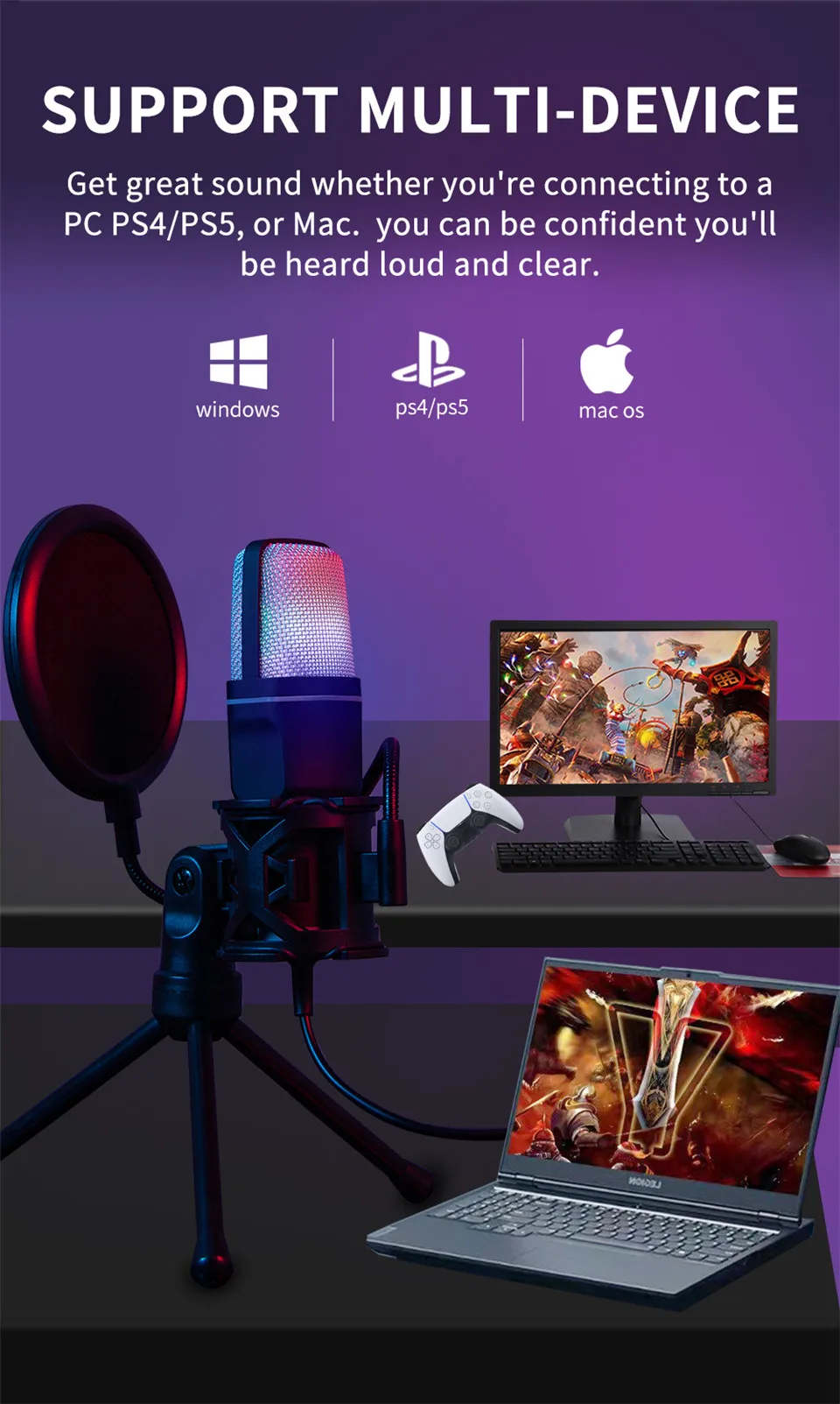 *Support Multi Device, can direct work with PC, PS4 or Mac, perfact for Streaming, platforms like Stream labs OBS, OBS Studio, and X Split. Podcasting, Vocal Recording, Compatible with Laptop.