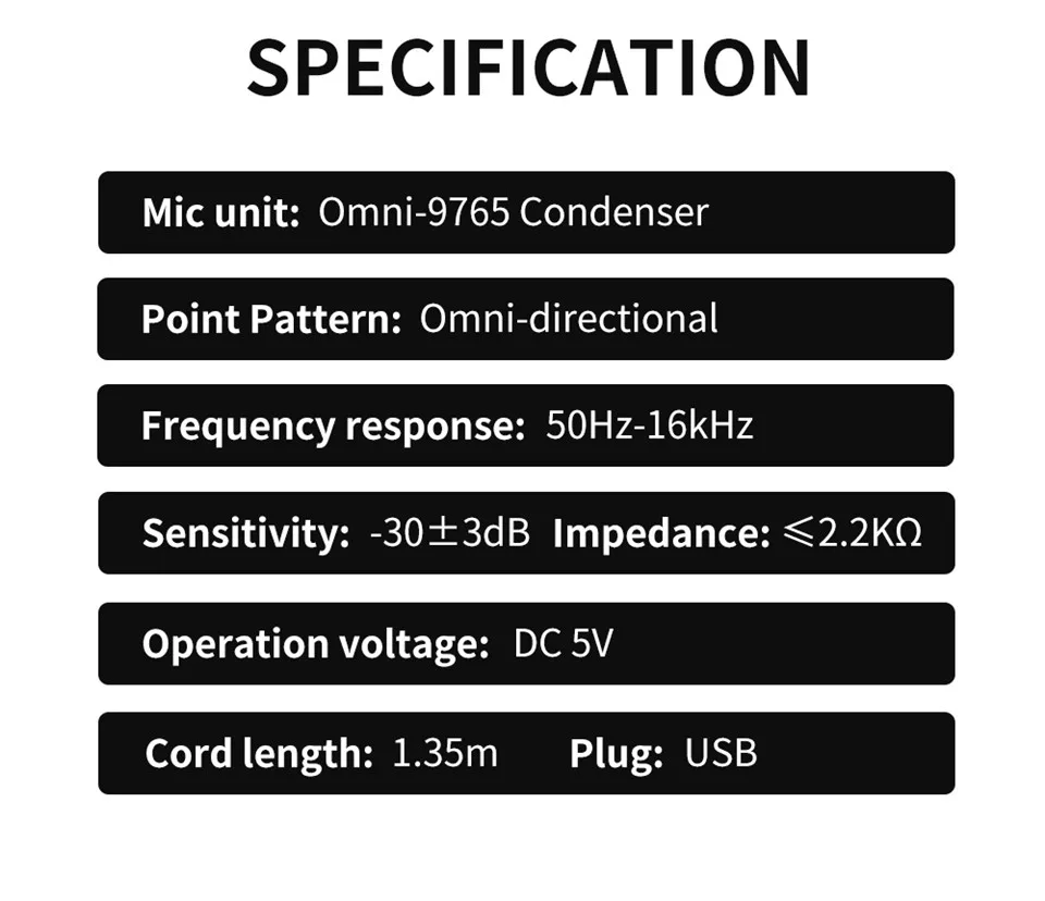*Omnidirectional Pickup Pattern: This mic has a Omnidirectional pickup pattern that captures the clear from all directions.