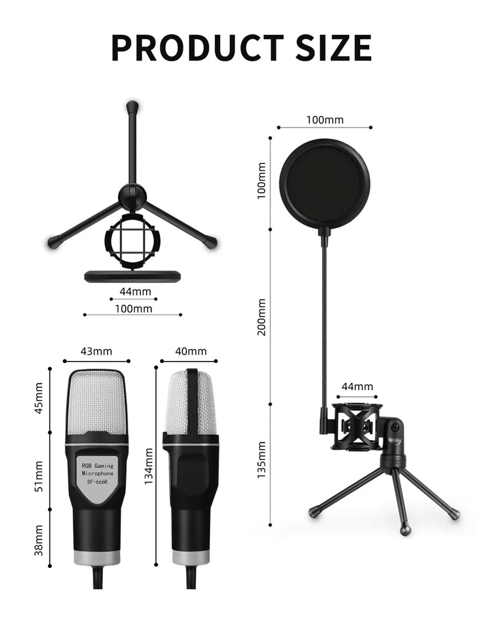 *What You Get: 1 x Microphone with Power Cord(1.35m), 1 x Foldable Mic Tripod, 1 x Mini Shock Mount, 1 x Pop Filter and 1 x Manual. (Note: It is not compatible with Xbox.)
