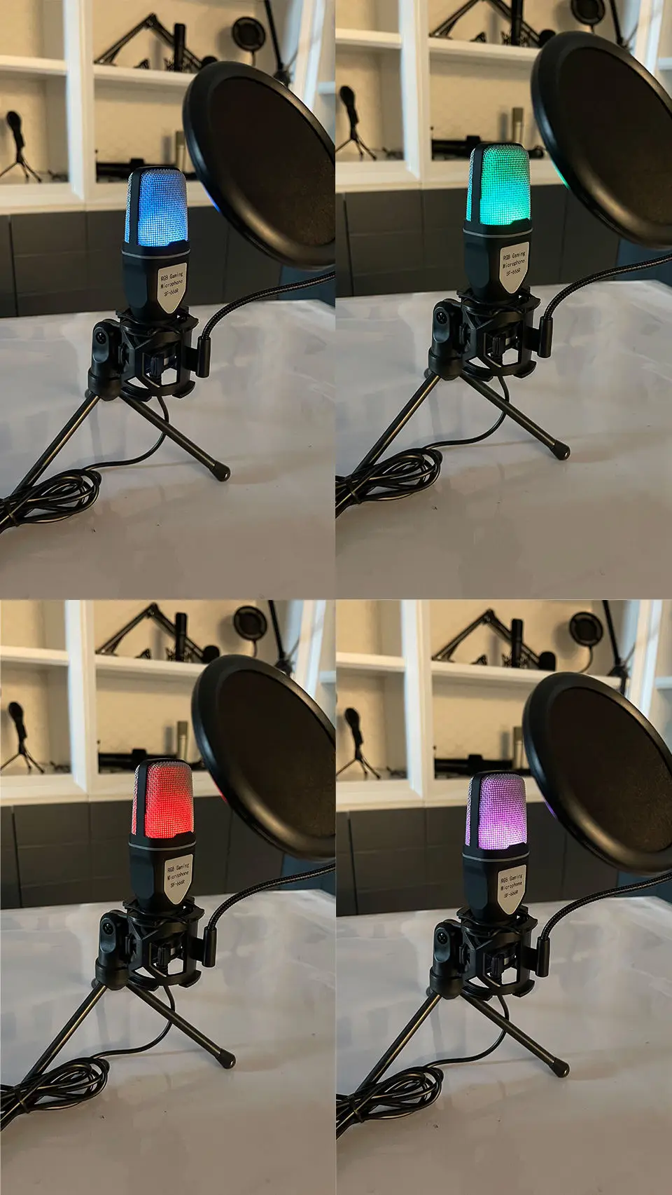 The product came working the sound has not yet checked how it sounds and so it works. I hope it will last a long time! On account of the LED strip, it did not work for me! Micro so normal! Only there is 1-when I put the pop filter on the microphone on the stand it begins to fall! I don't know what to do. I had to hold it by the lamp! The product is so happy with 8/10 it works.