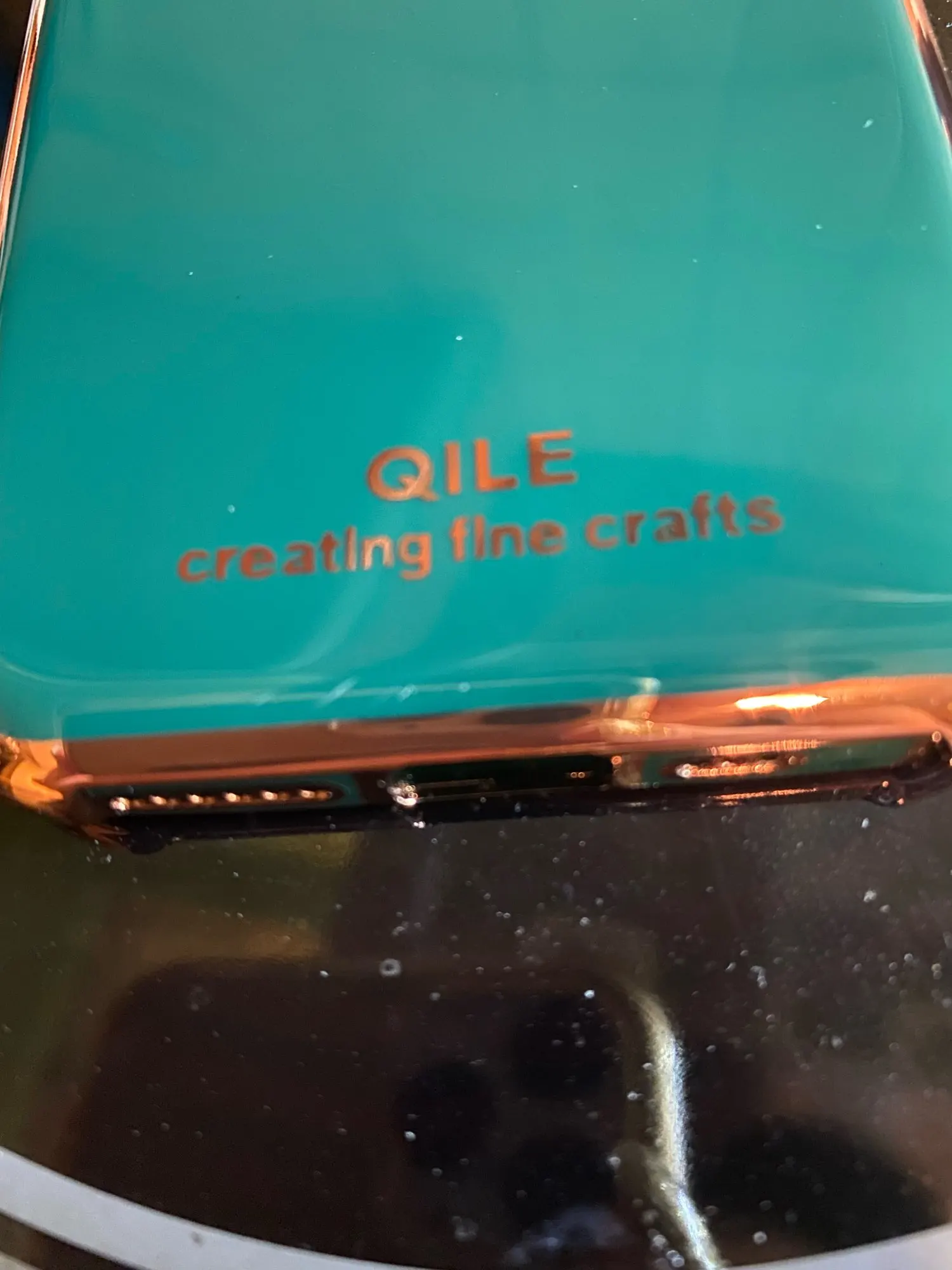 Looks like glass. But it's actually plastic. The holder is different in shade to the case itself