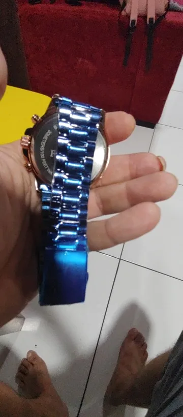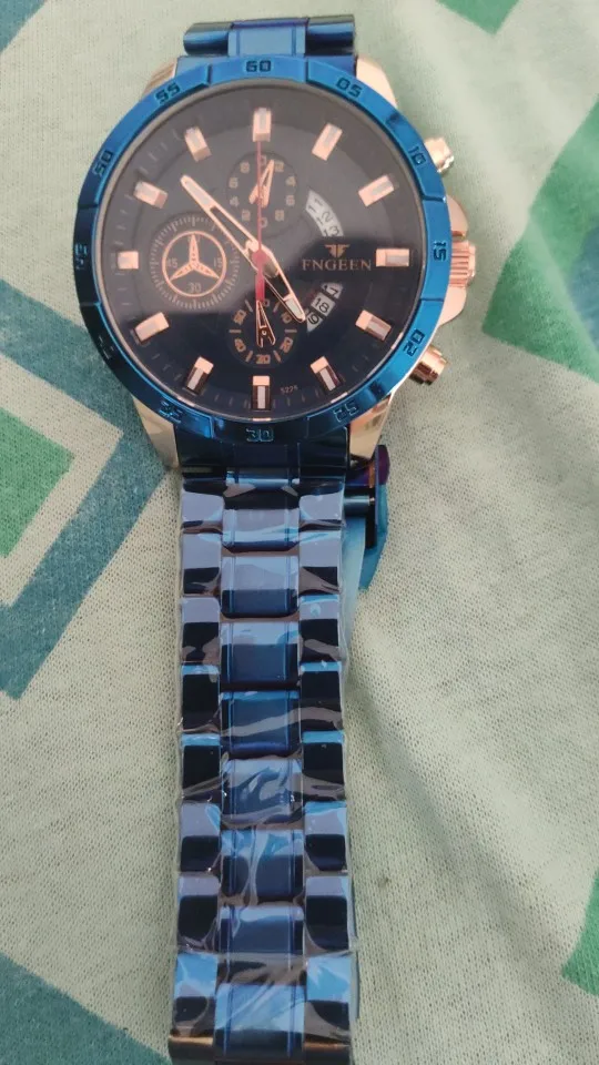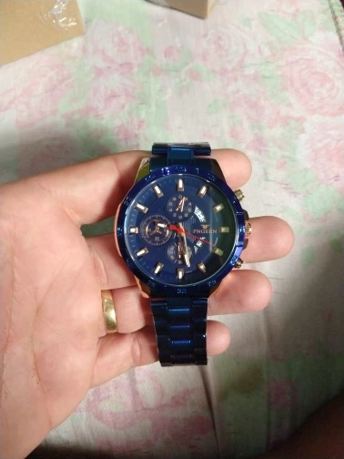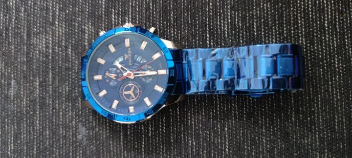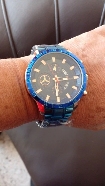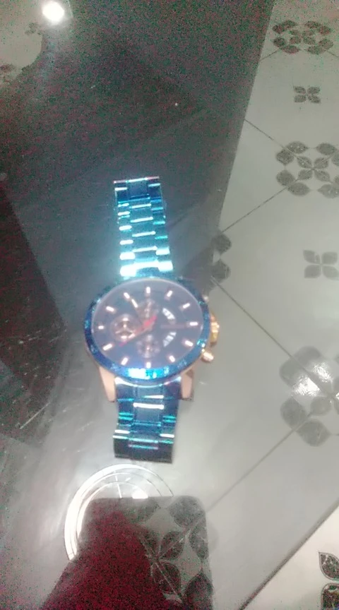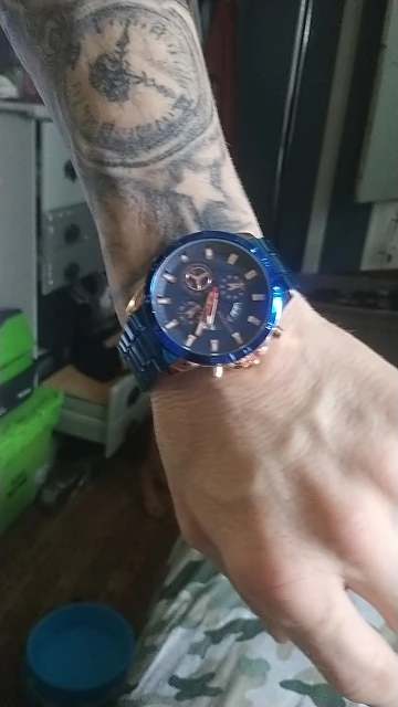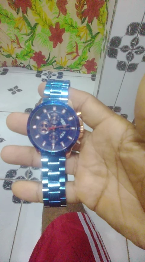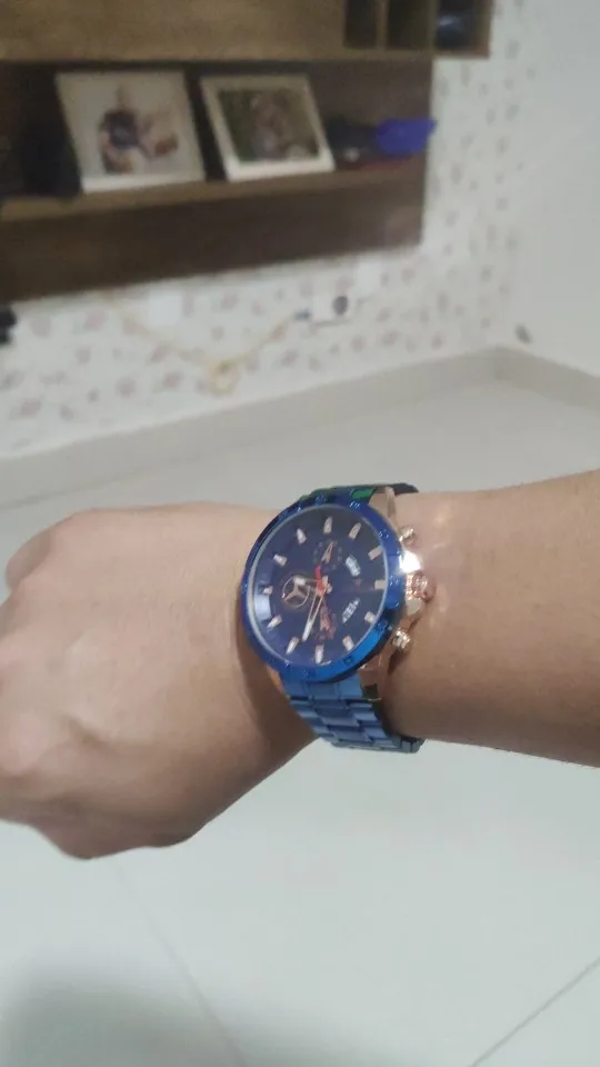 The watch is very beautiful and modern not found the color blue so vivid and gorgeous as the pictures of advertising more is ok, Sometimes depending on the watch movement the slits arm bracelet open and close pulling the hair and it is annoying and hurts thing that happens in a nibosi have, the Chronograph also could work, as the hands are very accurate not fail and the dowel date is all ok, Know the amount paid can not charge both as a first line over it to Min is the most beautiful watches Express and certainties was a good purchase and buy again without regrets is approved, is cool!