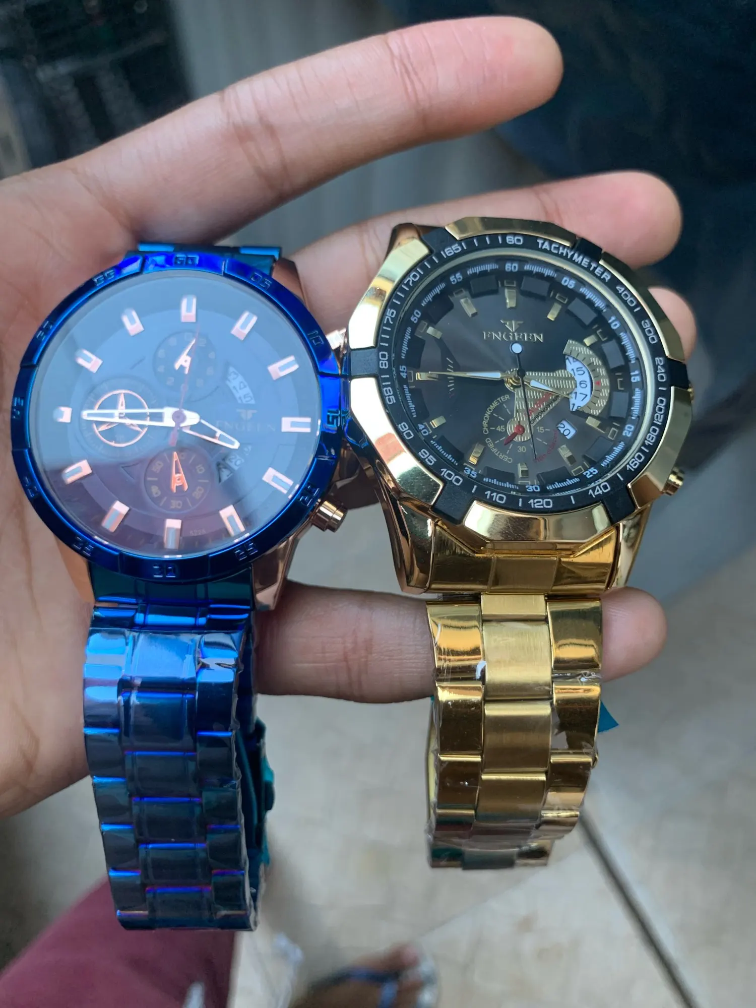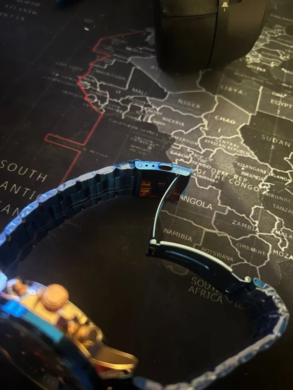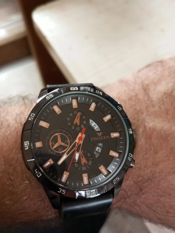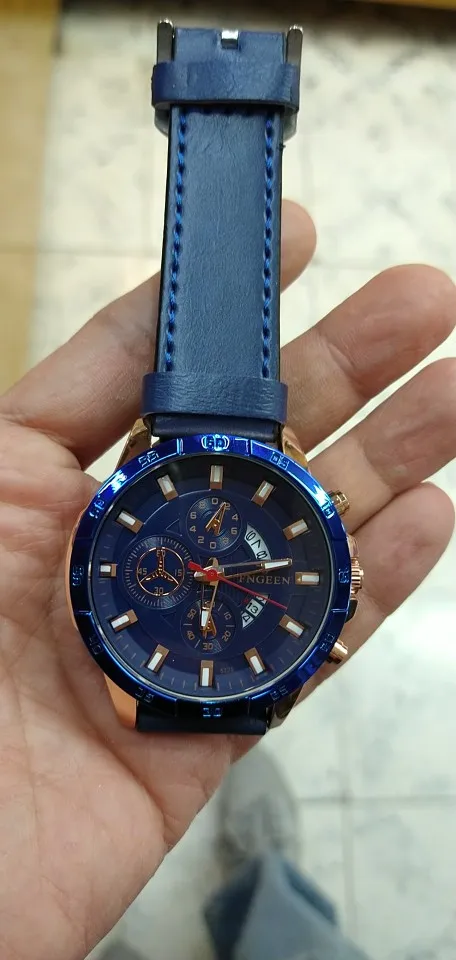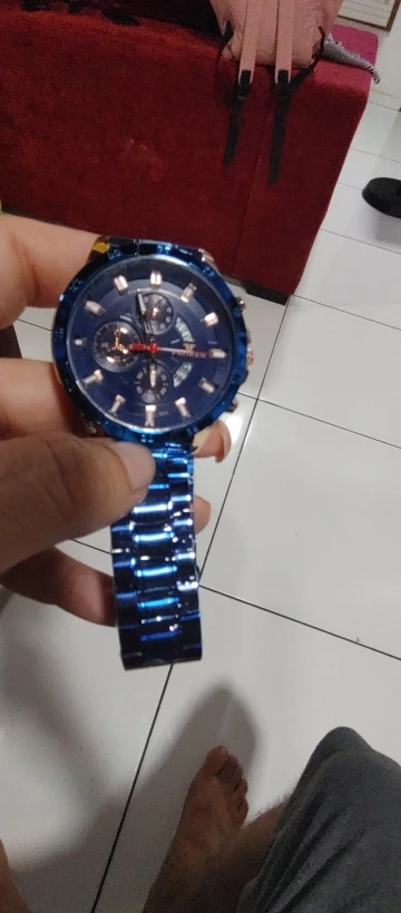 The watch is very beautiful and modern not found the color blue so vivid and gorgeous as the pictures of advertising more is ok, Sometimes depending on the watch movement the slits arm bracelet open and close pulling the hair and it is annoying and hurts thing that happens in a nibosi have, the Chronograph also could work, as the hands are very accurate not fail and the dowel date is all ok, Know the amount paid can not charge both as a first line over it to Min is the most beautiful watches Express and certainties was a good purchase and buy again without regrets is approved, is cool!