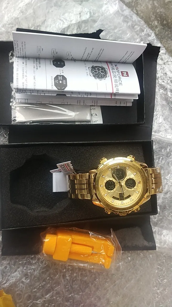 Hello, I have received my NAVIFORCE watch. Double displays. Stainless steel / Gold. And I thank you ! I am attaching the photos.