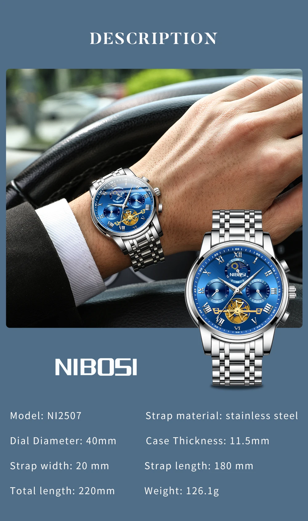NIBOSI Business Fashion Chronograph Watch