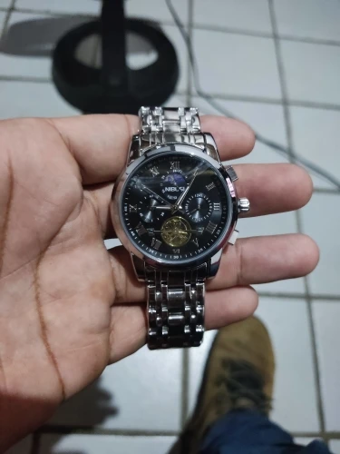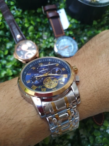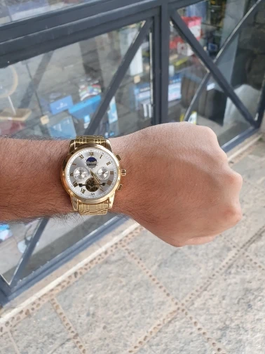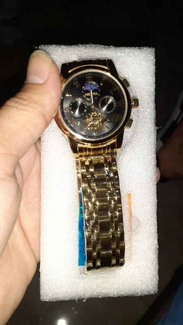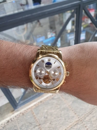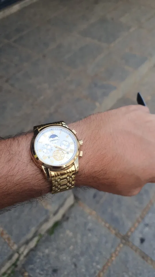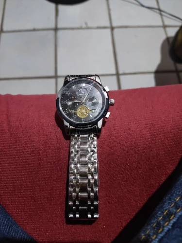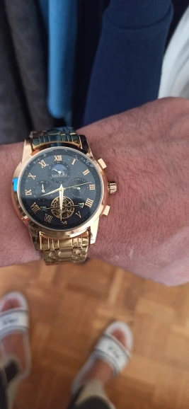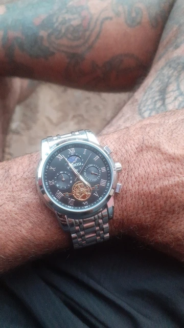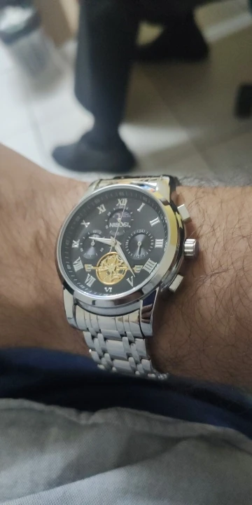 o relógio até que é bonito ,mas me senti enganado com a engrenagem,achei que fosse automático hehe, uma observação o feche do relógio é horrível fica abrindo fácil , não compraria novamente por causa disso, é um baita encomodo! Ah e ele é 40mm a caixa bem pequeno