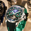 Nice watch. Come in a branded box. In the kit there is an instruction. All the watches were glued with a protective film. The watch liked, on the hand look stylish and expensive. Execution without complaints, everything is neat and high quality. There are all three arrows, and a time scale, a calendar. The watch is mechanical, have an open mechanism, they are equipped with self-winding. The clock starts when moving, when walking. Silicone strap, soft. The watch will fit on a narrow wrist.