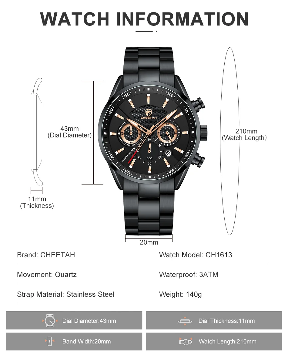 CHEETAH Casual Sport Chronograph Watch