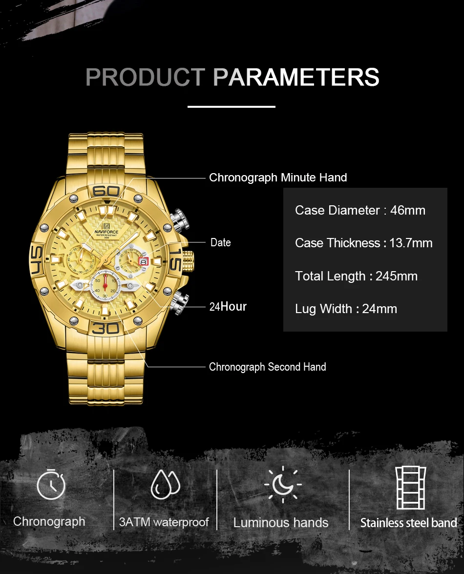 Amazing watch! High quality, as usual. Naviforce is top brand! The best in this price range! Everything is functional. The watch is masculine, heavy, metallic. The strap is great, complements the watch. It came well packed, in an envelope with all the original accessories. Not damaged. I bought this watch on 11.11, it arrived in one month. The store is great, very good communication! Thanks seller! 5*