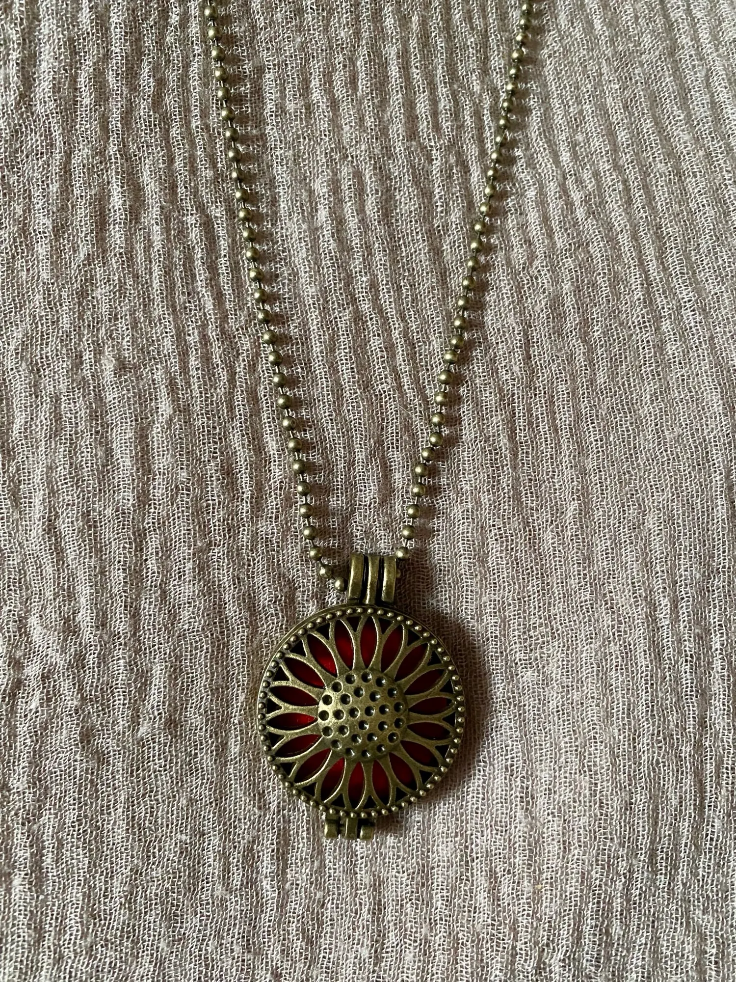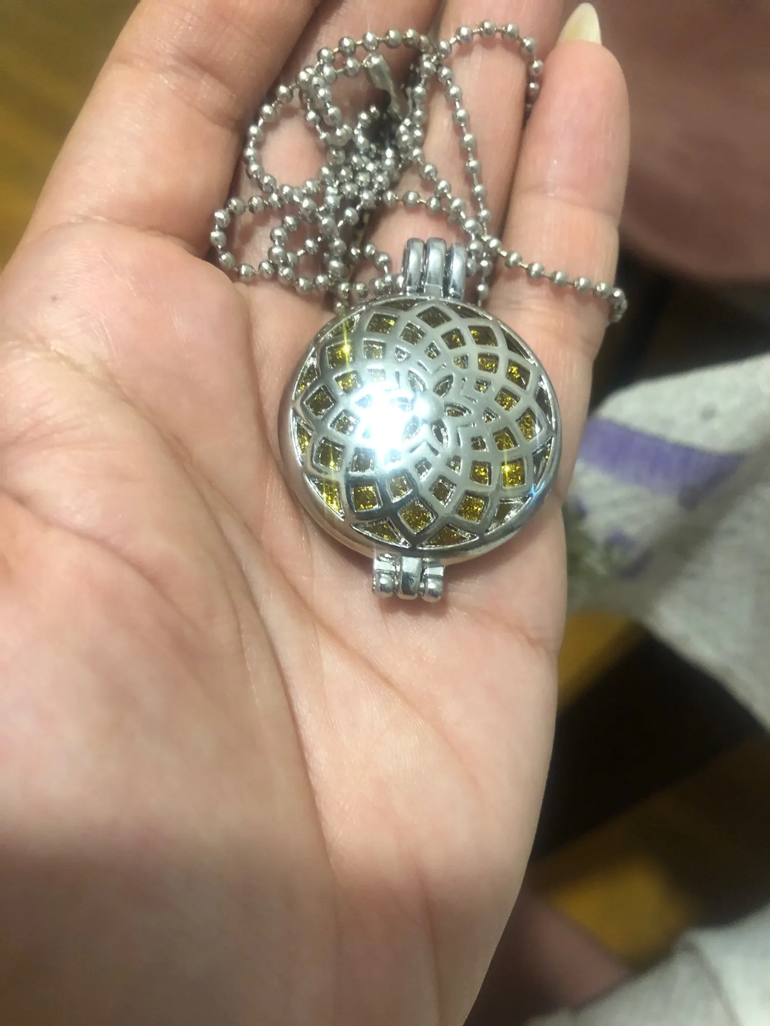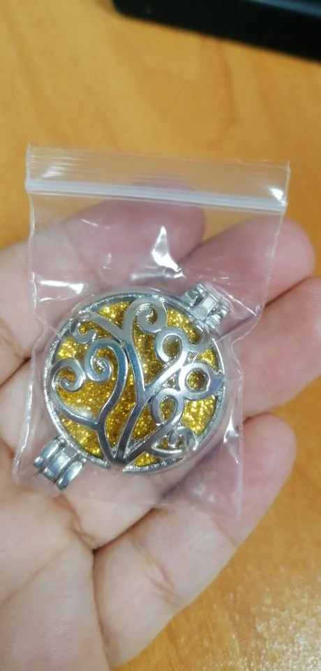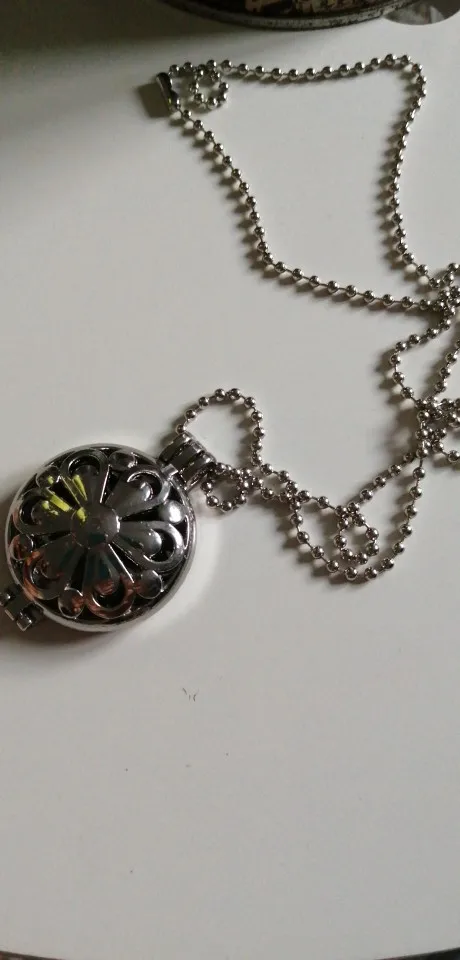 Very beautiful necklace. I put a few drops of essential oil (mint) the necklace does smell nice. Totally recommend it.