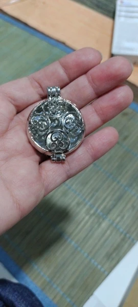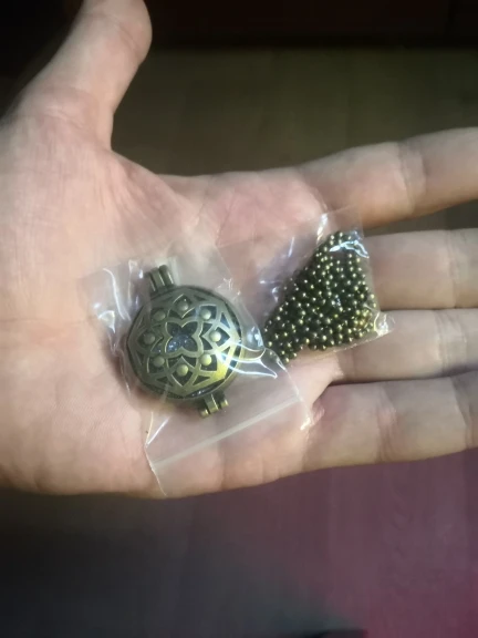 A cool pendant-flavoring (or a pendant-secret, if you carefully glue the slots in the covers with cloth or artificial leather). The pendant is made under bronze. Heavy and very roomy. Put in it a fairly large piece of Eraser (20 × 17 × 7mm)-still remains a free place inside, The Eraser dangles inside when shaking. A cool decoration with a wide horizon for creativity and application. I recommend the store.
