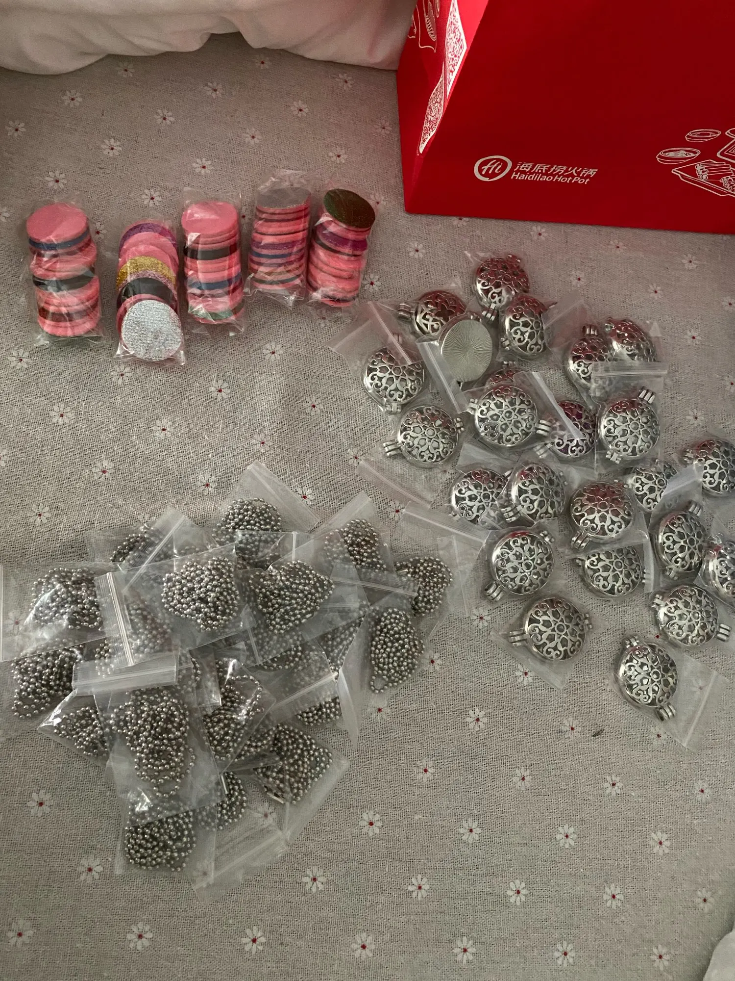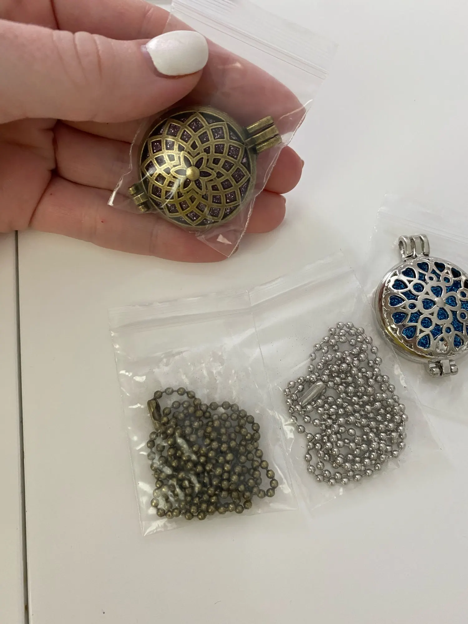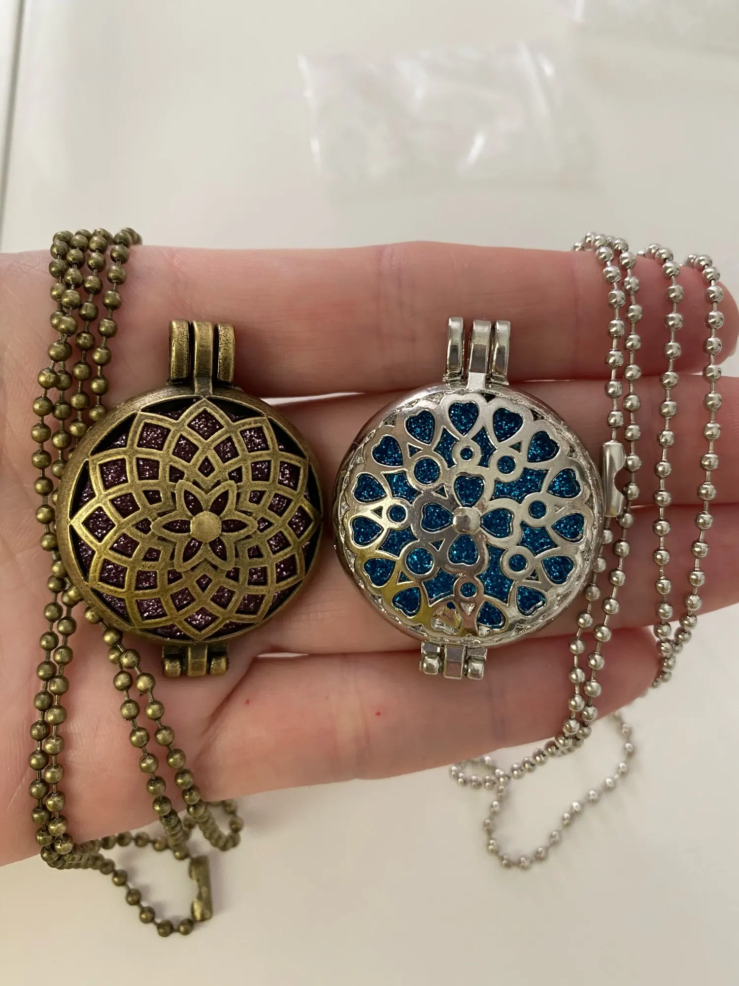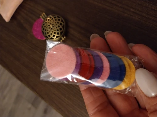 Very beautiful and good quality. Found a little big (has 32 mm wide), wanted to be more delicate. The Felts put inside are sparkling. Came 1 felt for each necklace, different colors.
