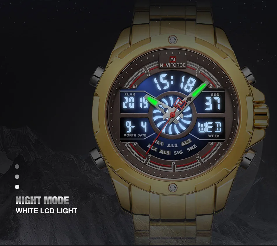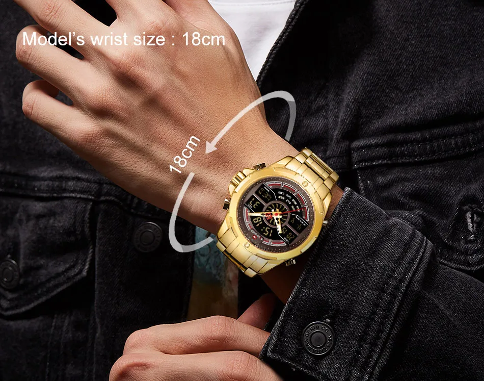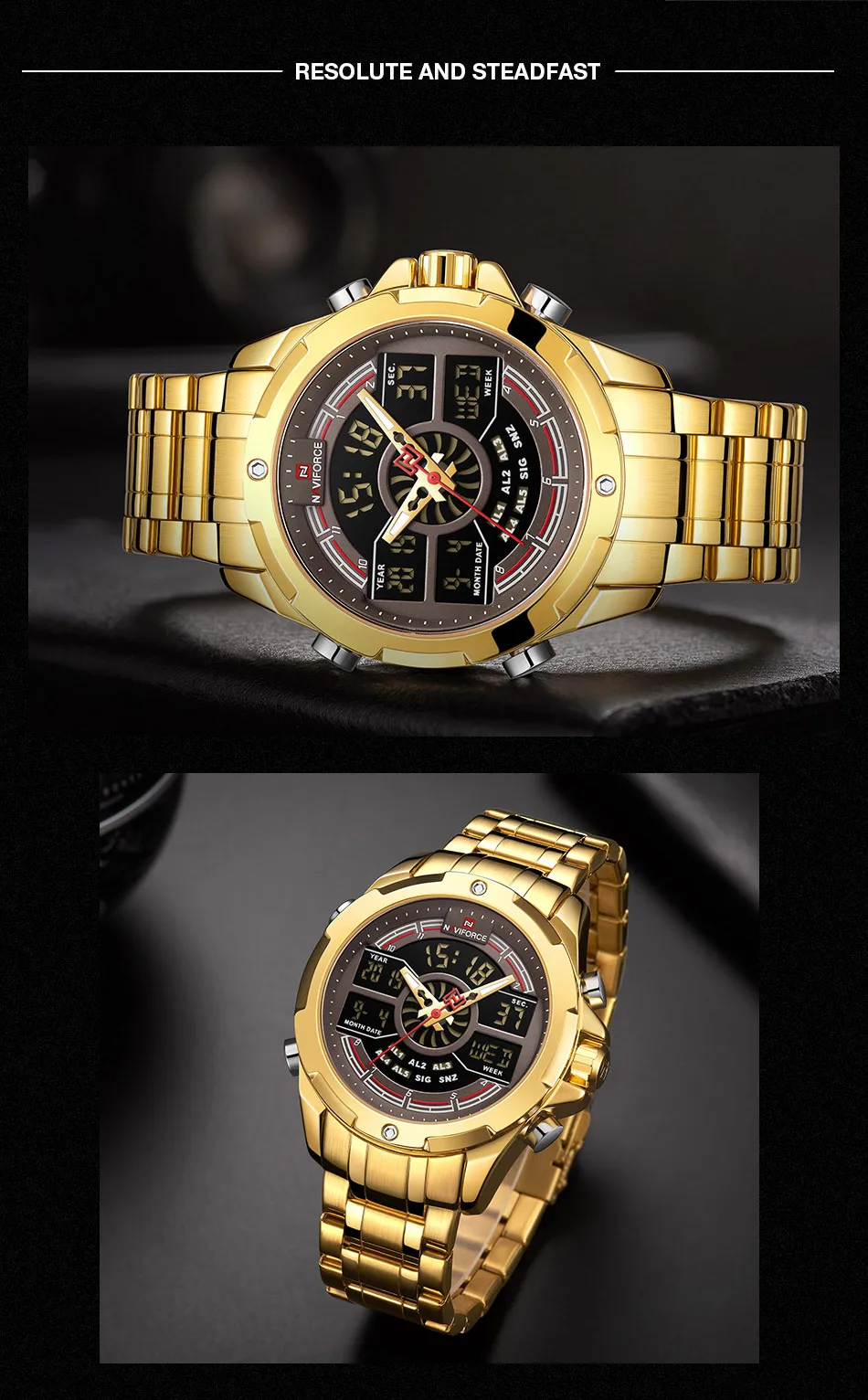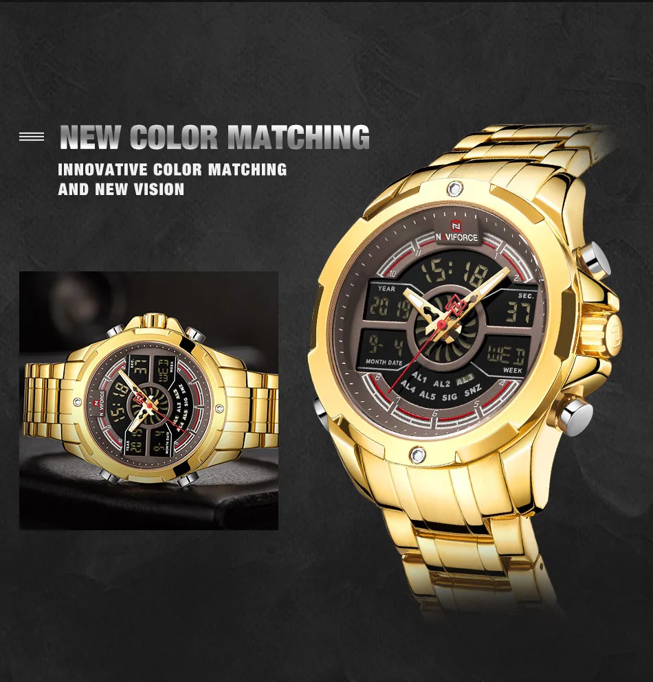Hello, I received my watches NAVIFORCE gold. Double displays. And thank you! They're pretty. I'll attach the pictures to you.