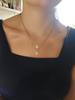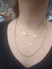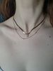 This necklace is really cute the only problem is that sometimes the 2 chains twist around themselves and they don’t sit as nicely as in the photo