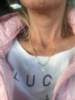 Very cute and delicate necklace charm me! I hope it doesn't change color with uses. I recommend it is beautiful.