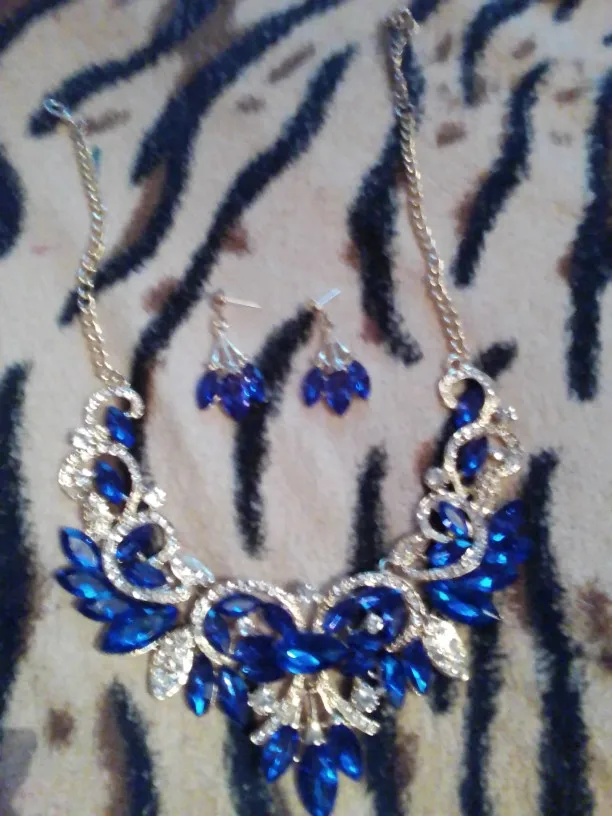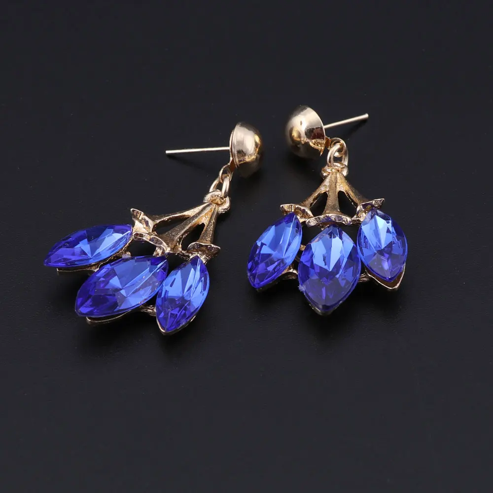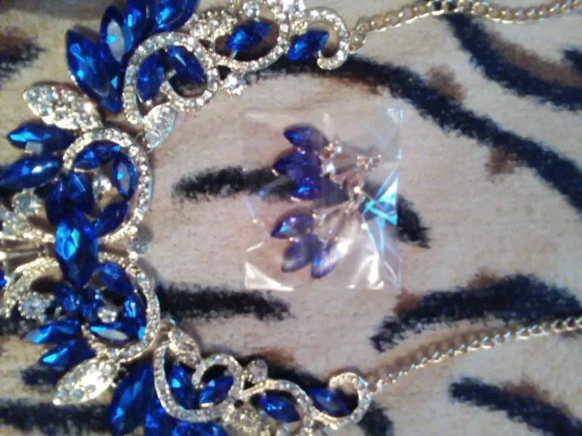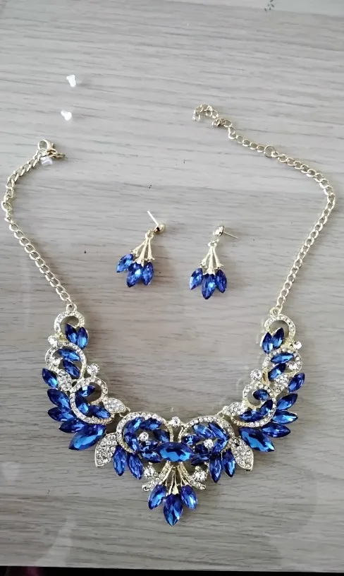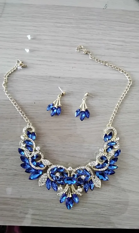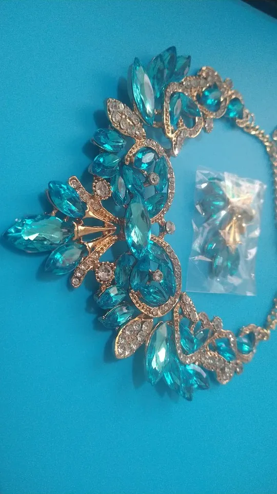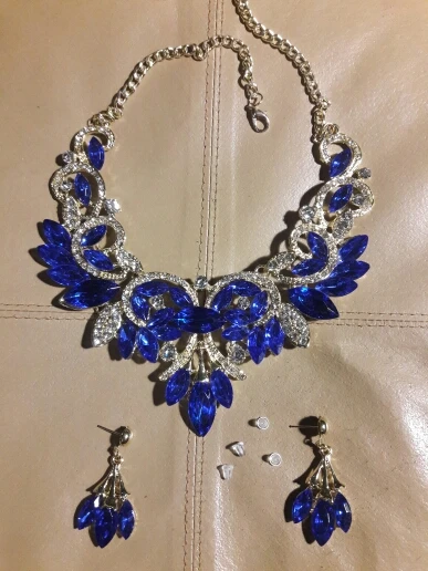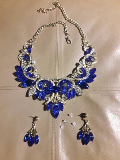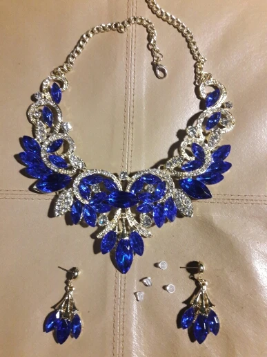 Blue Crystal Necklace Earrings Bridal Jewelry Set