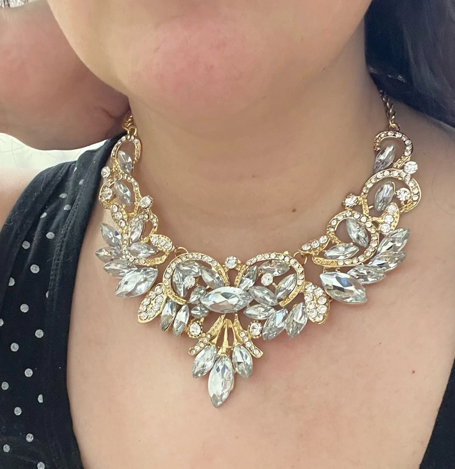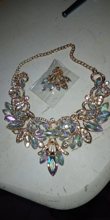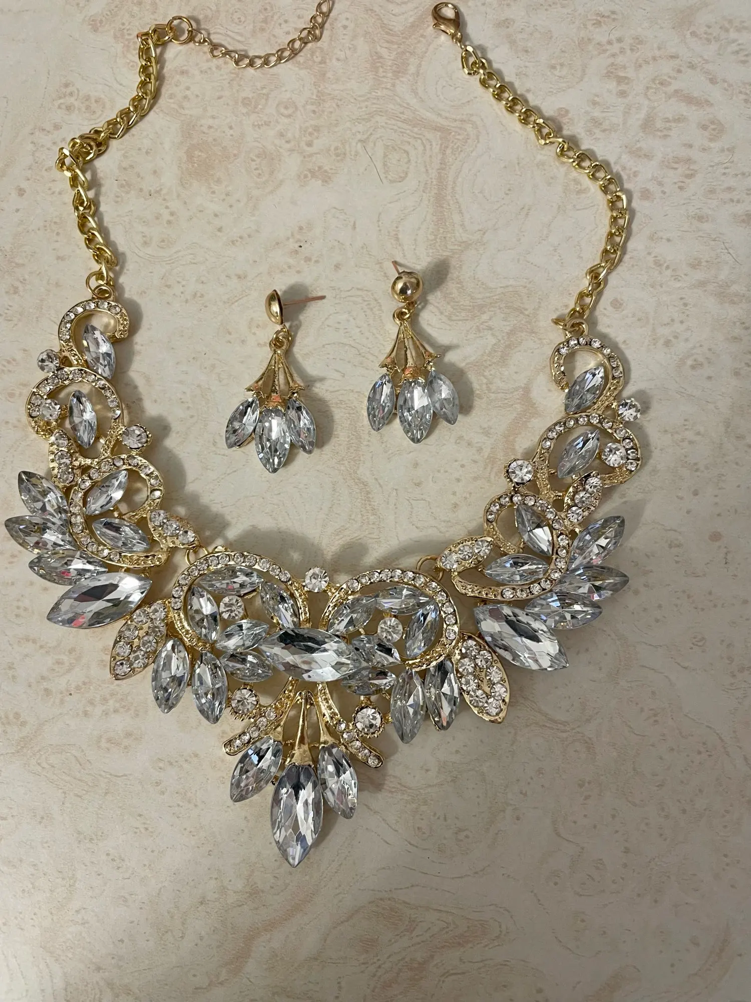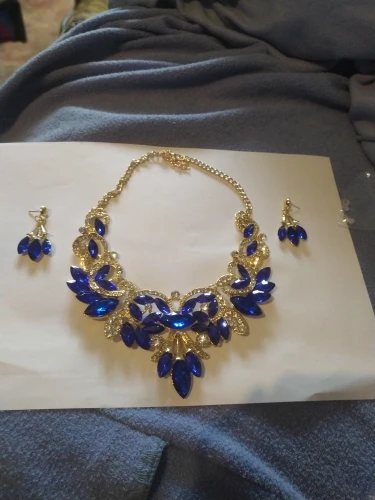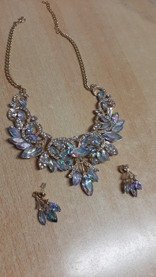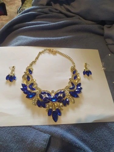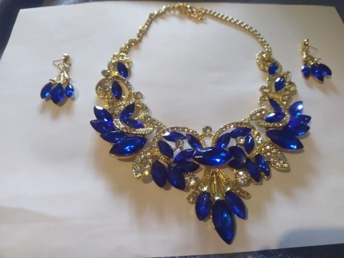 Blue Crystal Necklace Earrings Bridal Jewelry Set