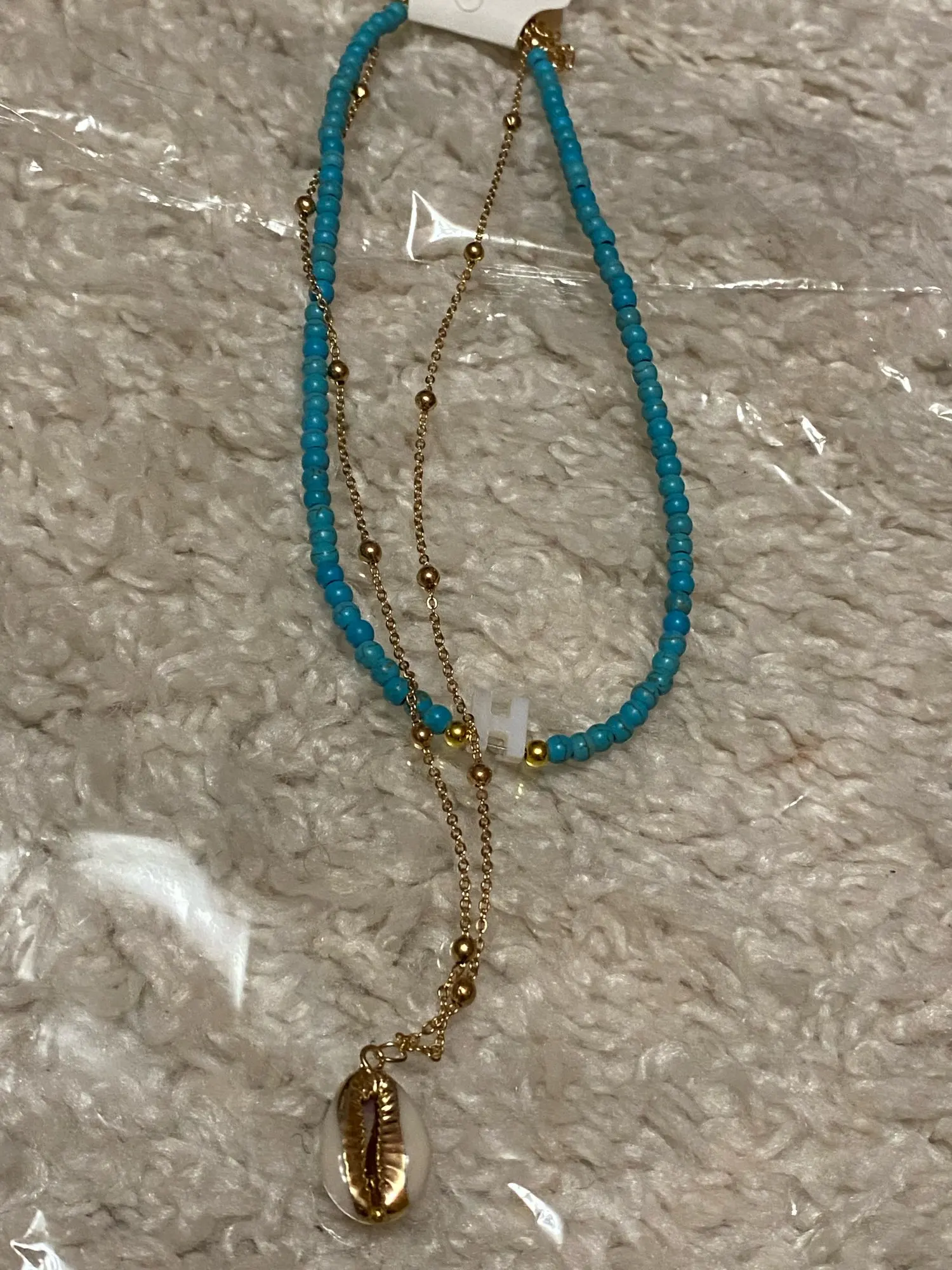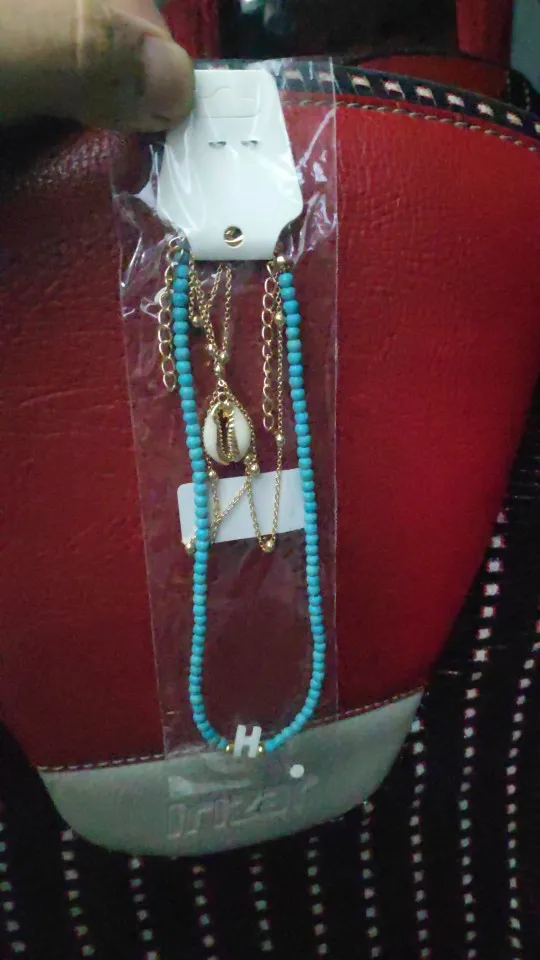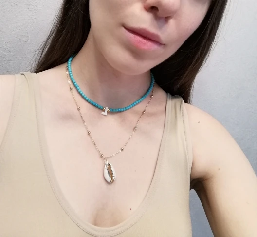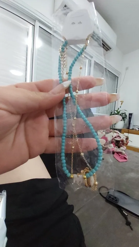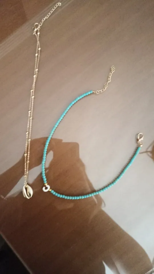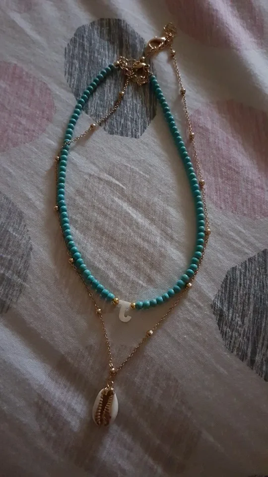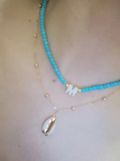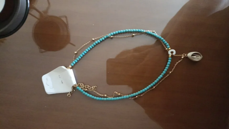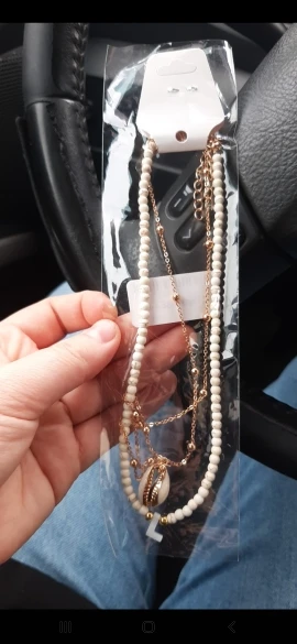 You know, decent performance. Not cheap. On a Sea holiday it is charming to wear. Blue natural stone, not plastic. The shell is also real. Thin chain itself, very light. But it looks and looks very good.