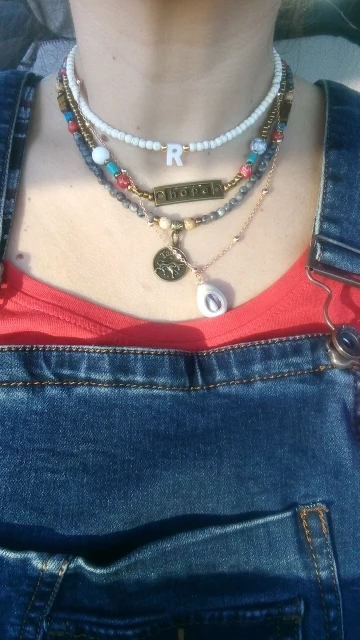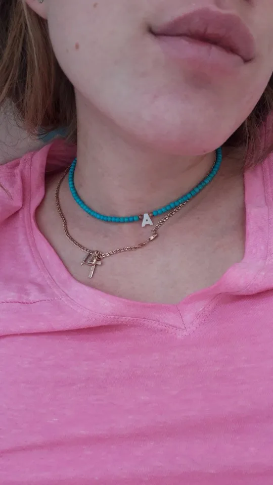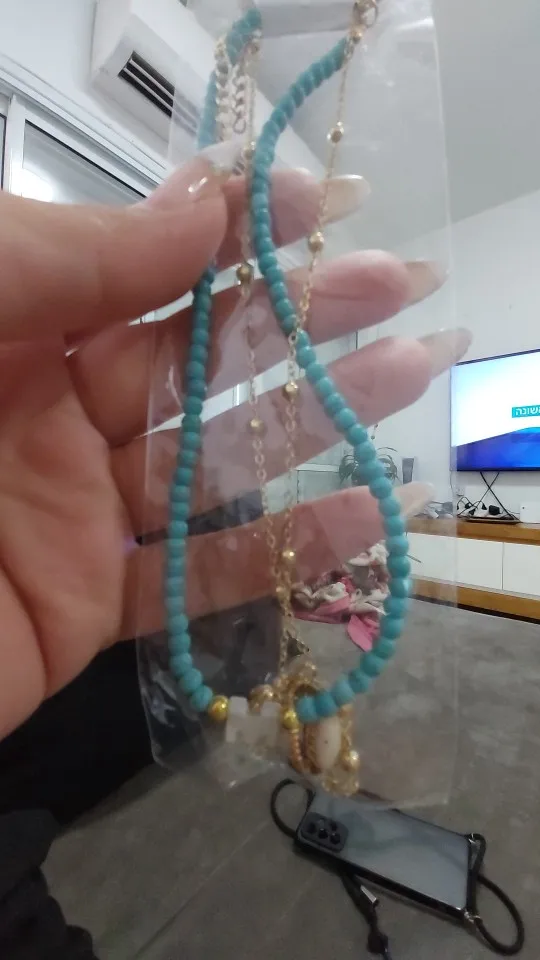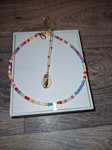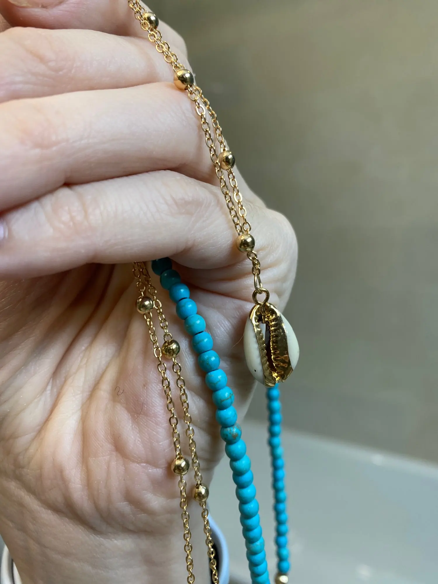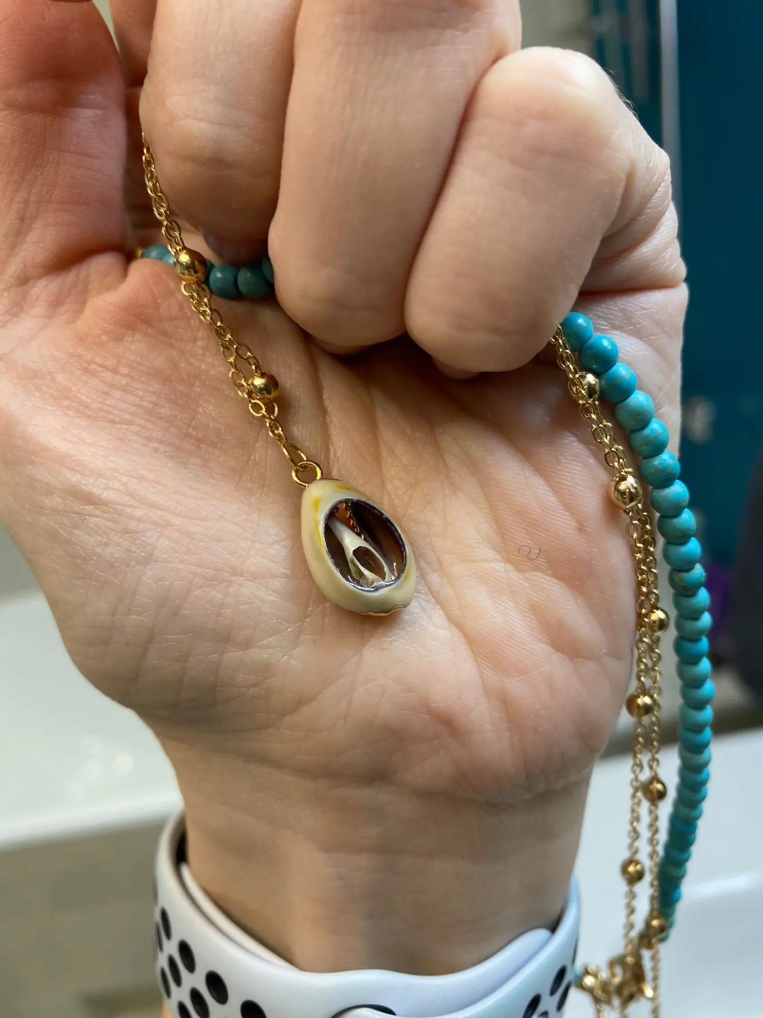 You know, decent performance. Not cheap. On a Sea holiday it is charming to wear. Blue natural stone, not plastic. The shell is also real. Thin chain itself, very light. But it looks and looks very good.