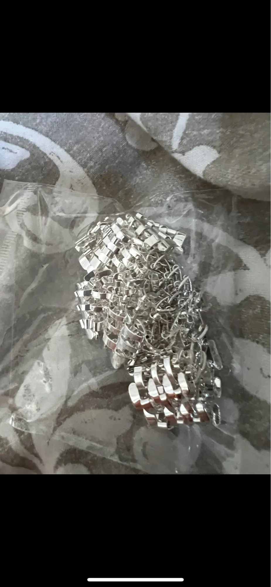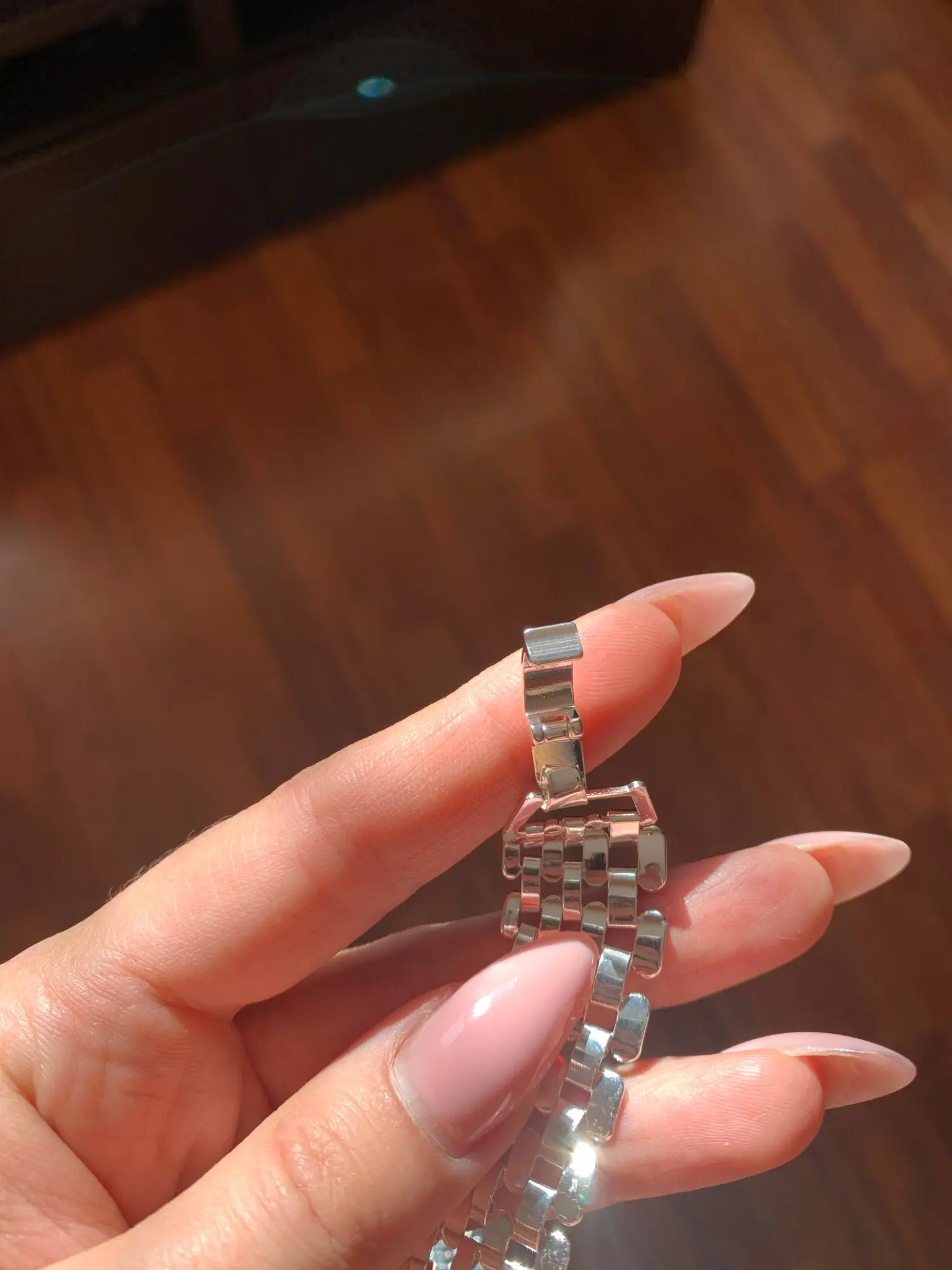 Very high quality jewelry, the color is bright, the metal is not flimsy. It seems that the color should last enough time, if you do not climb under the shower in all its glory)))) a very tight buckle-rather than a minus. But the main thing is a very chic gift from the store! The photo does not convey all the glitter of the chain! The color is very close to silver-in the photo the hand ring from our 925 silver. It came so quickly that I did not even have time to strain with waiting)))) the seller and this product I recommend definitely! To the seller Thank you very much for the gift!!!
