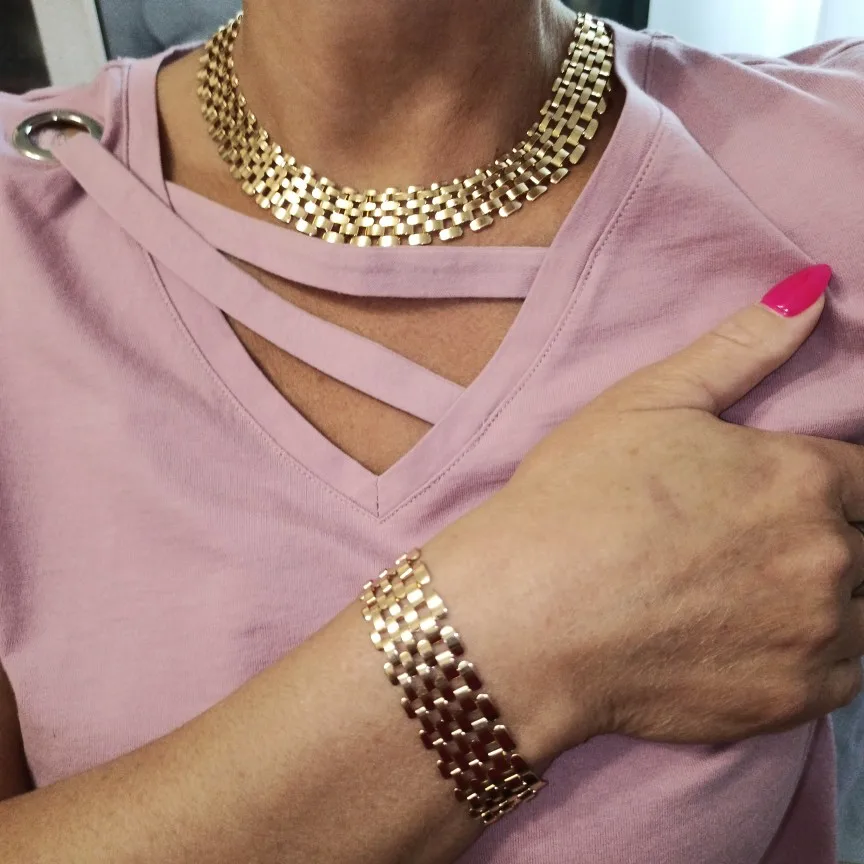Very beautiful bracelet, looks very impressive. Thank you to the store for the fast delivery. Unfortunately, unlike the bracelet, the necklace in the set came with a clear marriage, which is very noticeable. This fact upset, but for their money is not surprising.