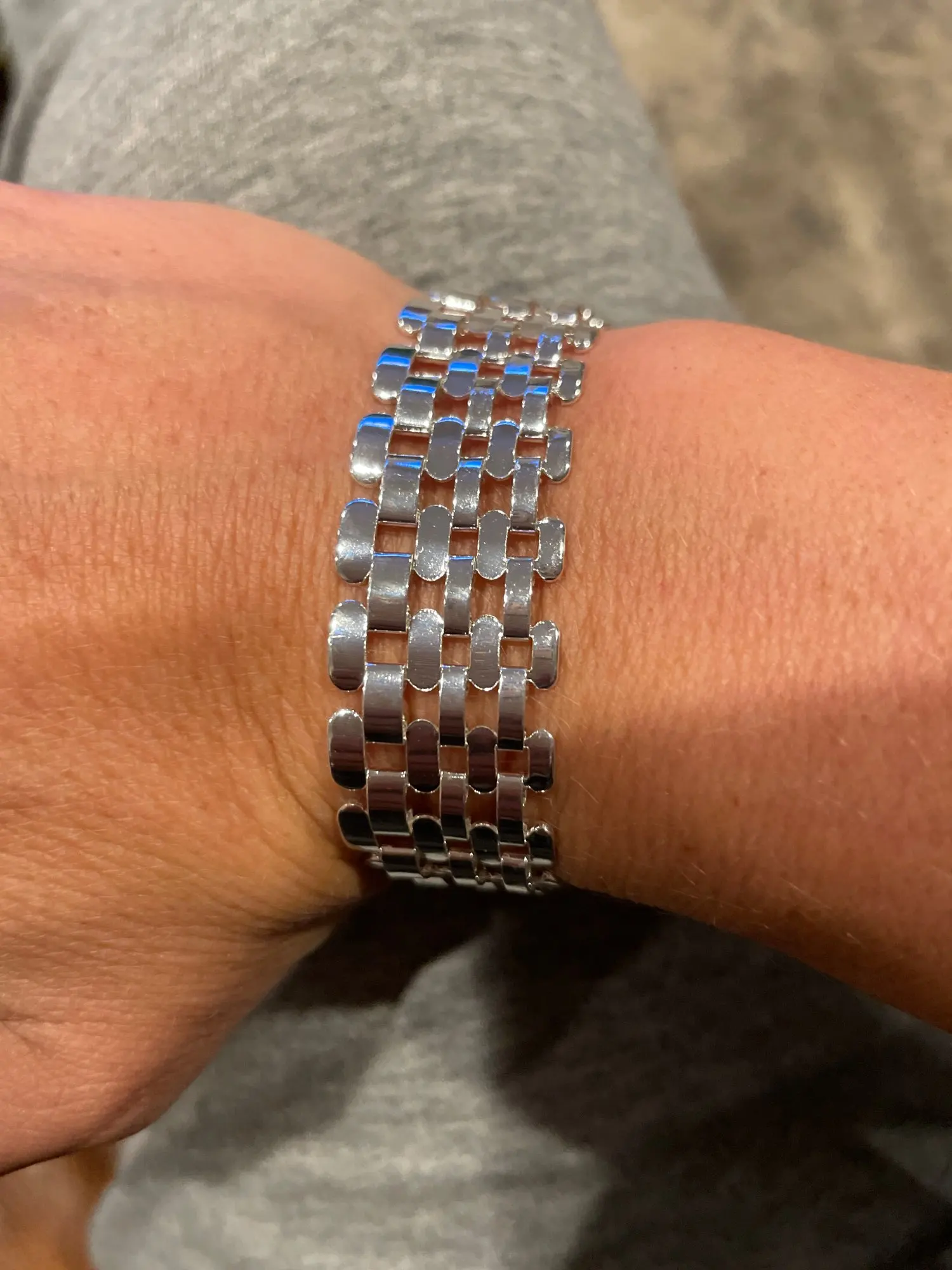 Very beautiful! The goods came quickly in 2 weeks. The bracelet is wide, although I have a wide wrist. Thank you for the present.
