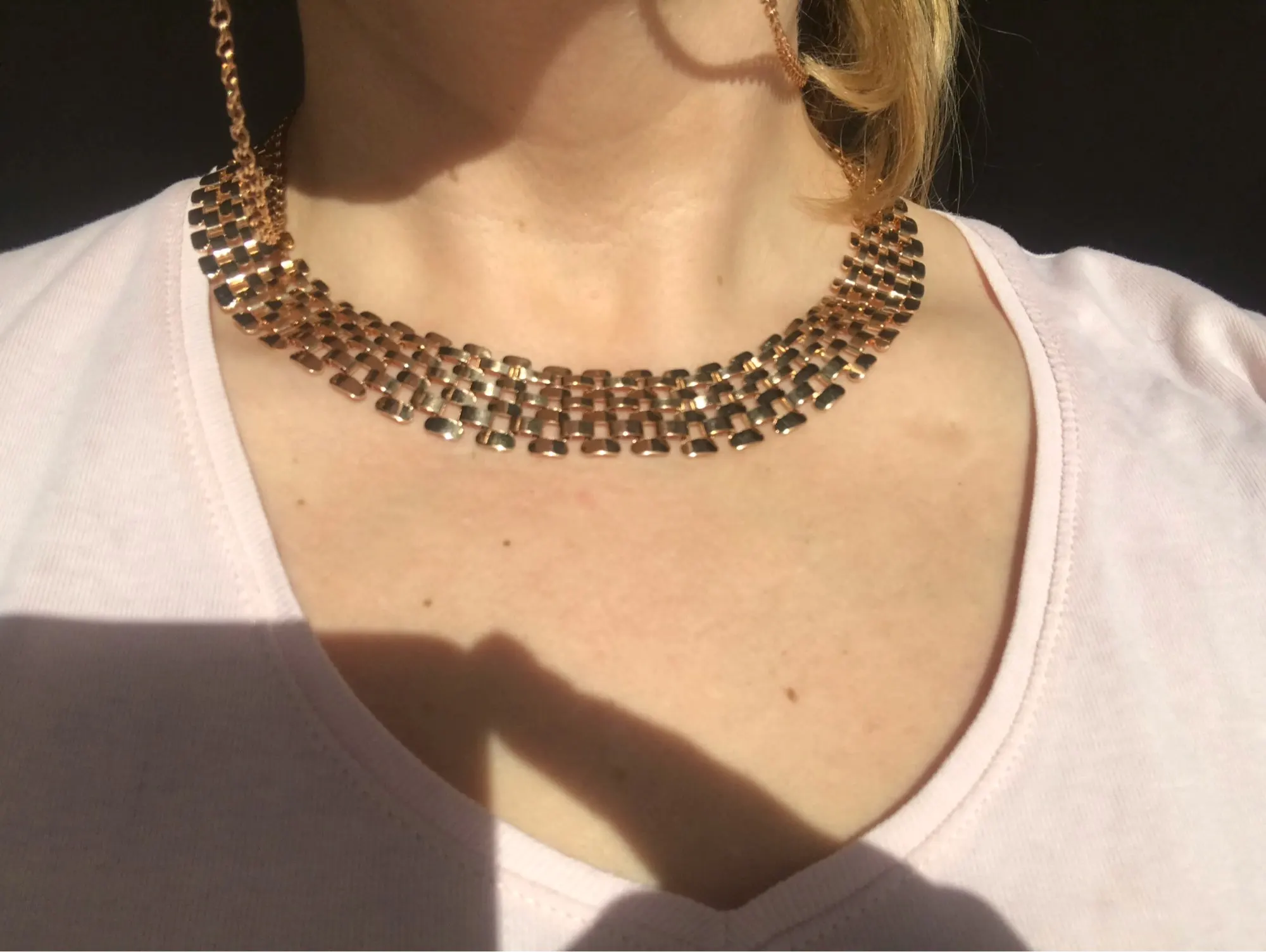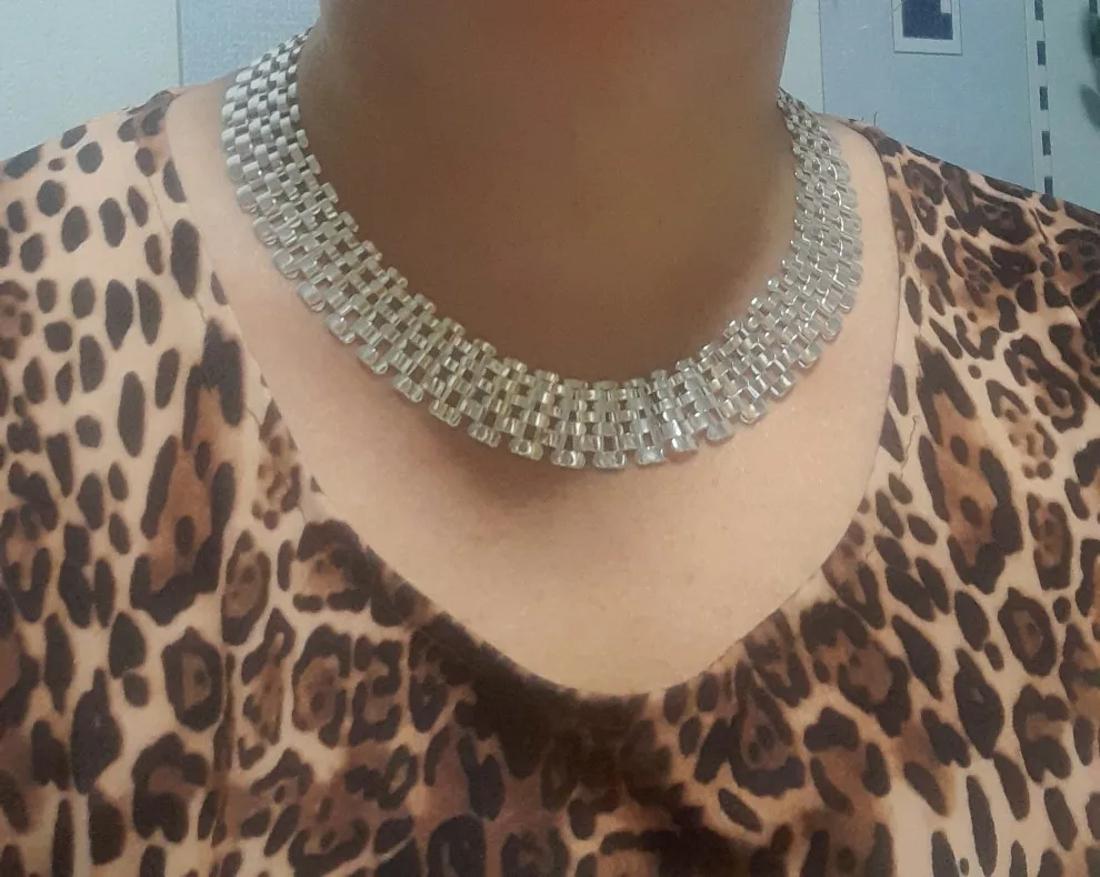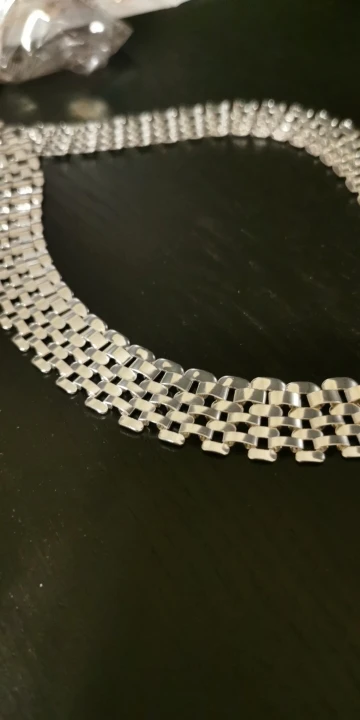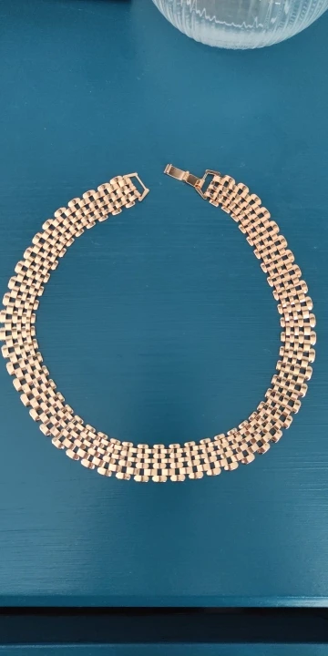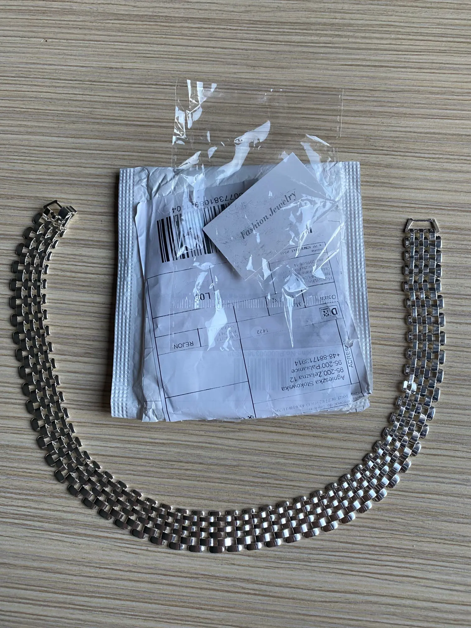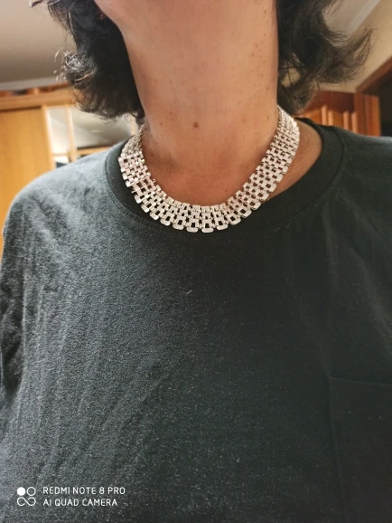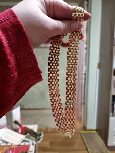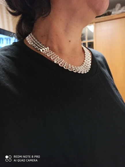 Disputed about the accuracy in the description, photos of the same necklace are so different!!! As if the necklace is of different width and different thickness (metal density). In general, it is designed to what everyone sees, what he wants to see. I expected the metal to be thicker, and the necklace is slightly wider. Perhaps different deliveries and necklaces really look different. There is a resemblance to the store's photos (below the photo, from the site, one in one similar to the necklace that I received), so there are no complaints to the seller But to be honest, for this money, you can buy tsazki on cooler. The necklace itself looks good. Metal of uniform color, new, shiny. To the blouse to which it was bought, it came. Delivery by the way is very fast. The seller definitely 5 stars.