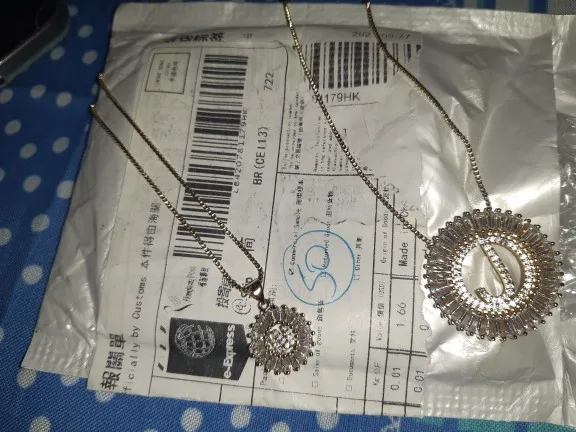 Loved my necklace! Came all packed right, N took to arrive, found very beautiful! Came to the city of Bahia slab Brazil.
