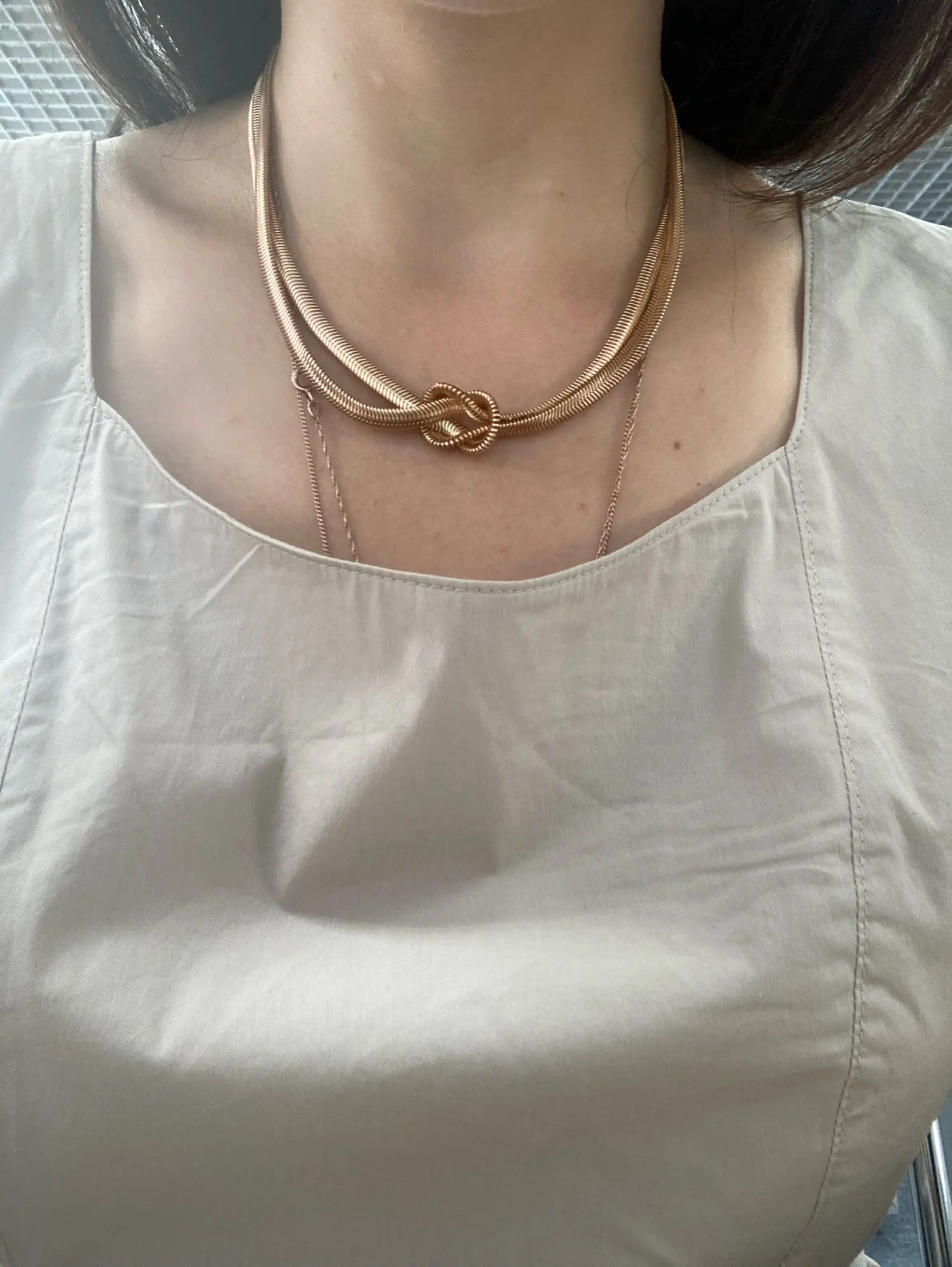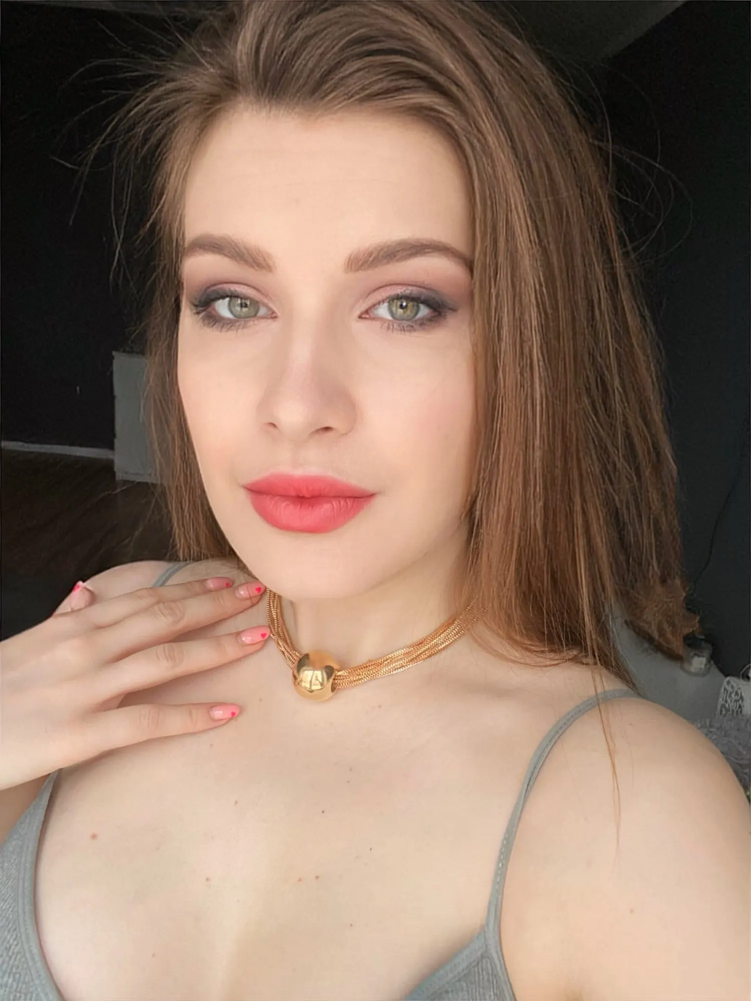 The necklace looks chic, Stylish. Like in the picture. Under the neck, on a not wide neck.