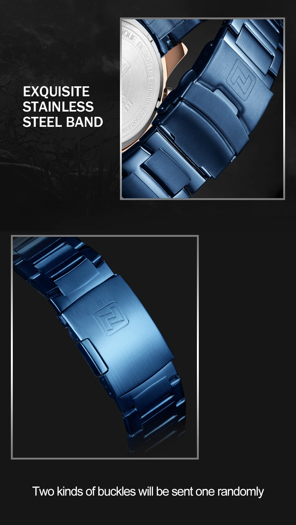 New Military Sports Wrist Blue Quartz Steel Strap Watch