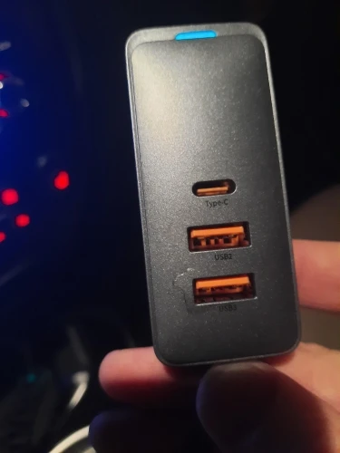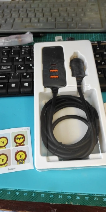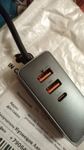 It came quickly, packed perfectly. But after opening the box, I found a pounded plastic near USB 1. The device itself works fine, charging fast, the cord is long. If it were not for pounding plastic it would be super, and so the mood is backed.