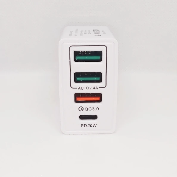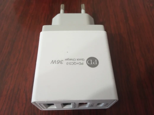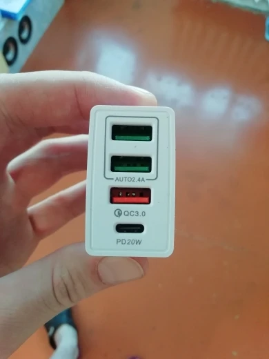 Charger delivered too lately by China festival, that's maybe Ok. Charger works formal USB PD, QC and 5V charging protocols. Xiaomi Redmi 9s (pro) detects as Mi Tuebo Charge on USB-C port, and QC on orange colored QC port as well. It shouldn't work at both port at same time for QC and PD. Just fine for 4 ports in a charger.