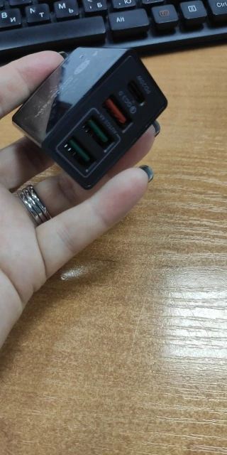 In short: the connector (PD 20W) issued a power bank of 9 volts of 1.4 amps, it is no longer necessary for fast charging, it is the norms. Regardless of the ports of yusb. But the yusb port was not surprised, 5.3 Volt 1.9 ampere for one consumer. QC 3.0 pure water urinal. When connecting two devices to the yusb ports (green and orange approximately), the voltage and amperage are reduced, Tupo divided one output into three. In fact, without loss, you can charge only two devices, using yusb port (what color) and Taip Si. It's up to you.