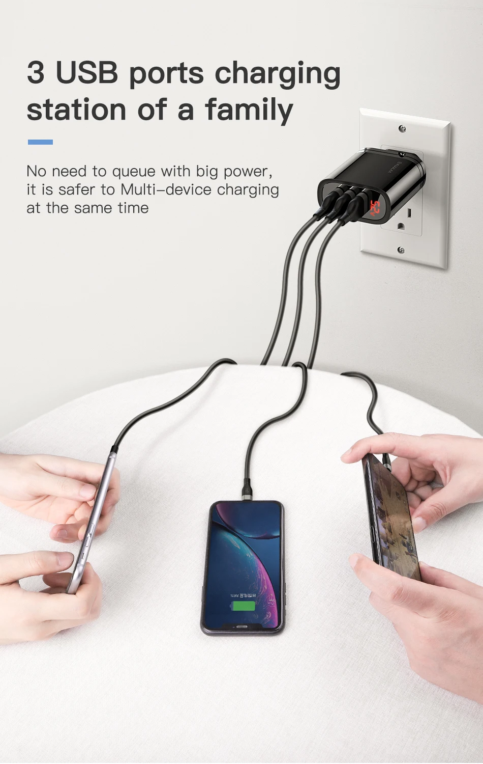● 3 USB Ports charging