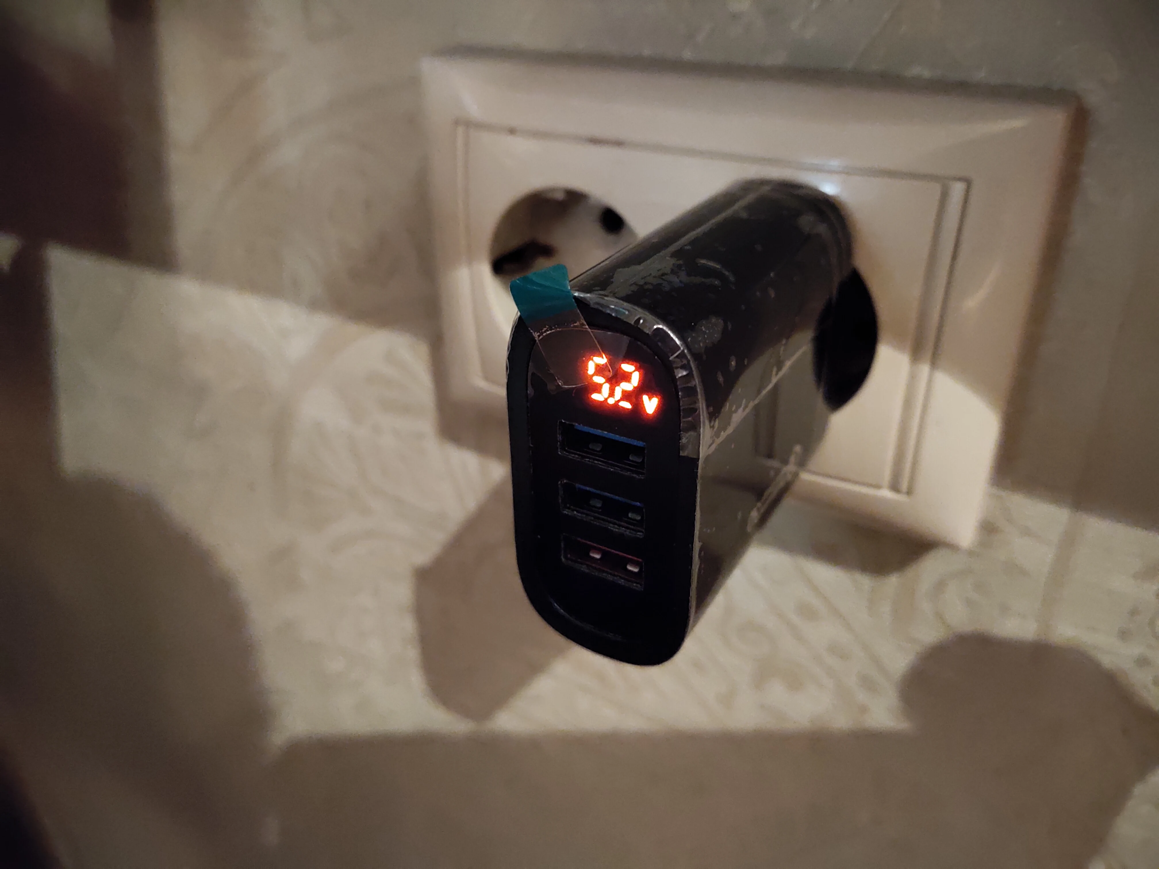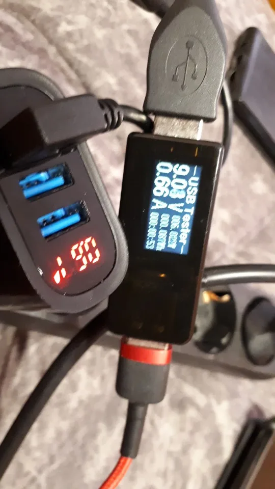 Good charging. The display is very convenient immediately to see what current consumes the phone. 3 connectors for me two phones immediately charges without problems.
