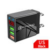 Shipping fast. Shows alternately output voltage (about 5 V) and charge current simultaneously of all connectors. I connected 3 smartphones at once. The charge current was about 3,8 - 4,1 A. All nests simultaneously supported fast charging (if the wire allows). If the charging is over, the charger board turns off. I really liked it!!!