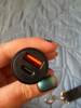 Ordered 2 charges, at 3.1A (dim font) and at 36 W (bright font and lilac USB port), fast charging only the cheapest adapter shows normal charging, for their money they are worth it, externally consist of metal, pleasant to the touch, And fit into the cigarette lighter clearly on the edge, delivery of debt, just over a month.