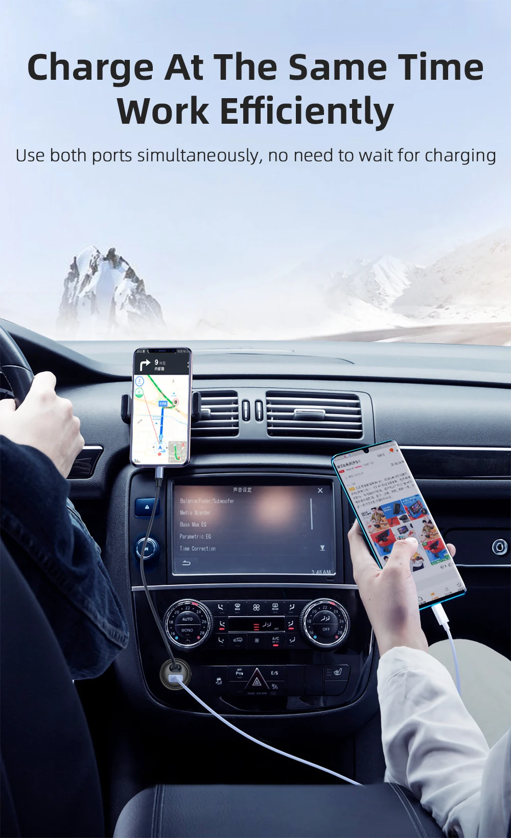 Very happy with my car charger Fits perfectly into the "car lighter hole" It has for 2 USB but I only use one since two at a time, depends on the size of the usb you have "touch" since they are together At the moment it meets its function