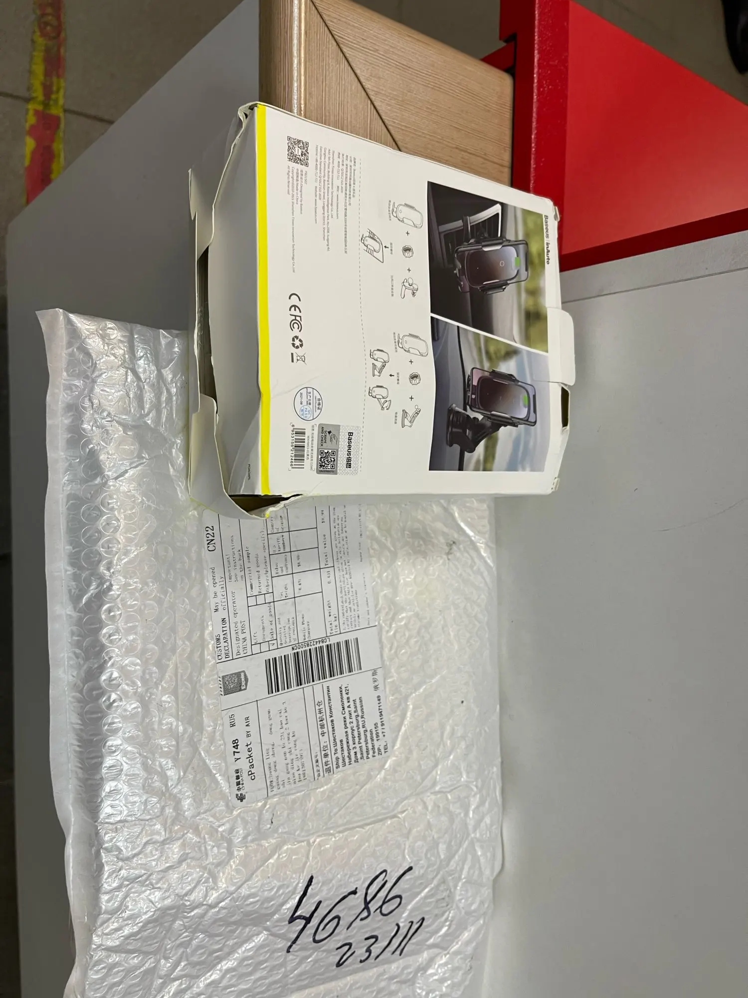 Came to Moscow in 14 days. I did not communicate with the store, because there was no need. The box is slightly crumpled, but the holder is bought for itself, so it does not matter. Holder, in my opinion. Before that, there was a holder of a similar design (Deppa), but he was on his mind-on the move could reveal his paws. Behind baseus, this is not seen. Not noticed and the complaint of some that in the frost the legs do not open-this was not, although, maybe, quite terrible to him yet. In general, I'm happy with the purchase.