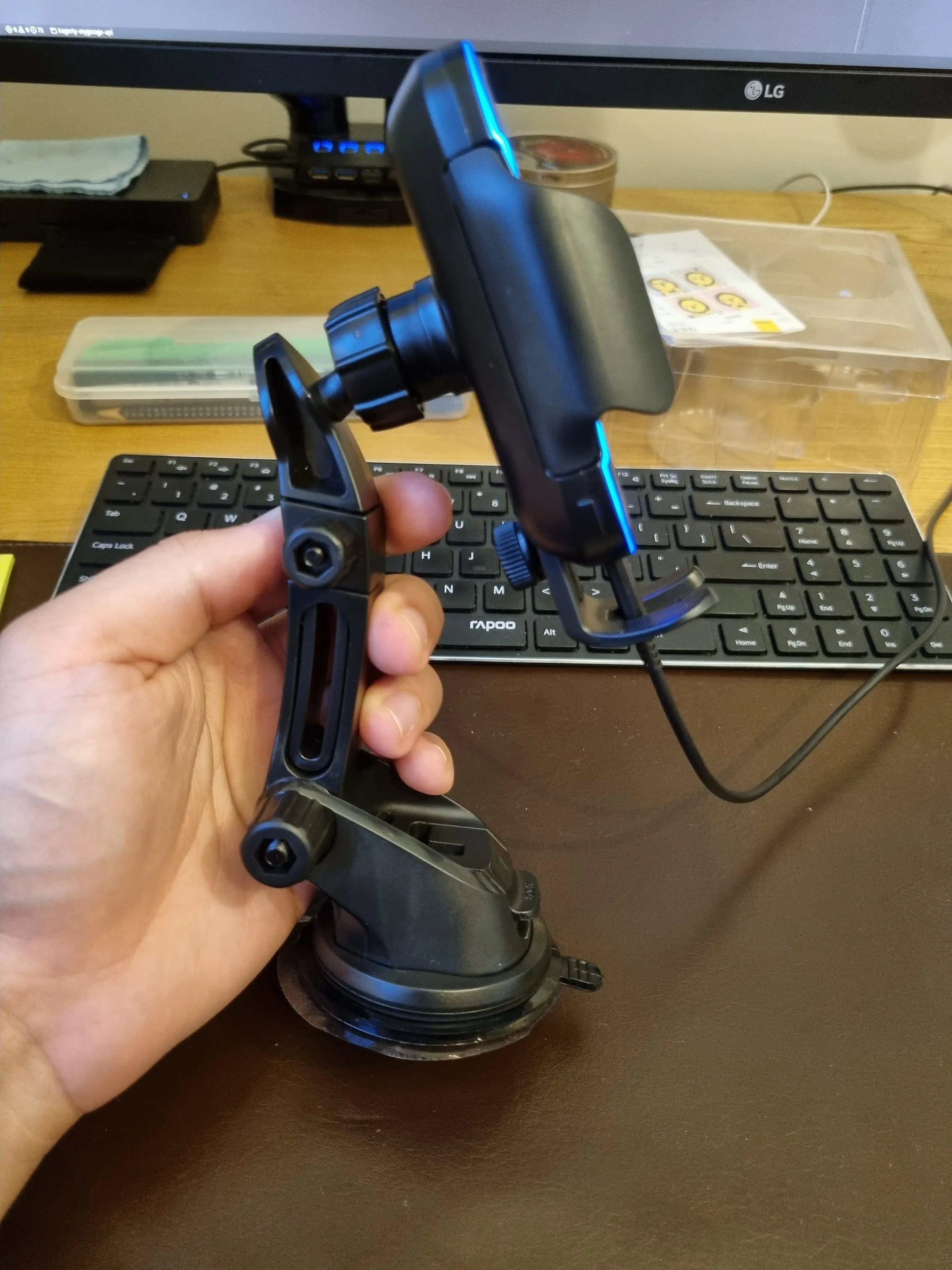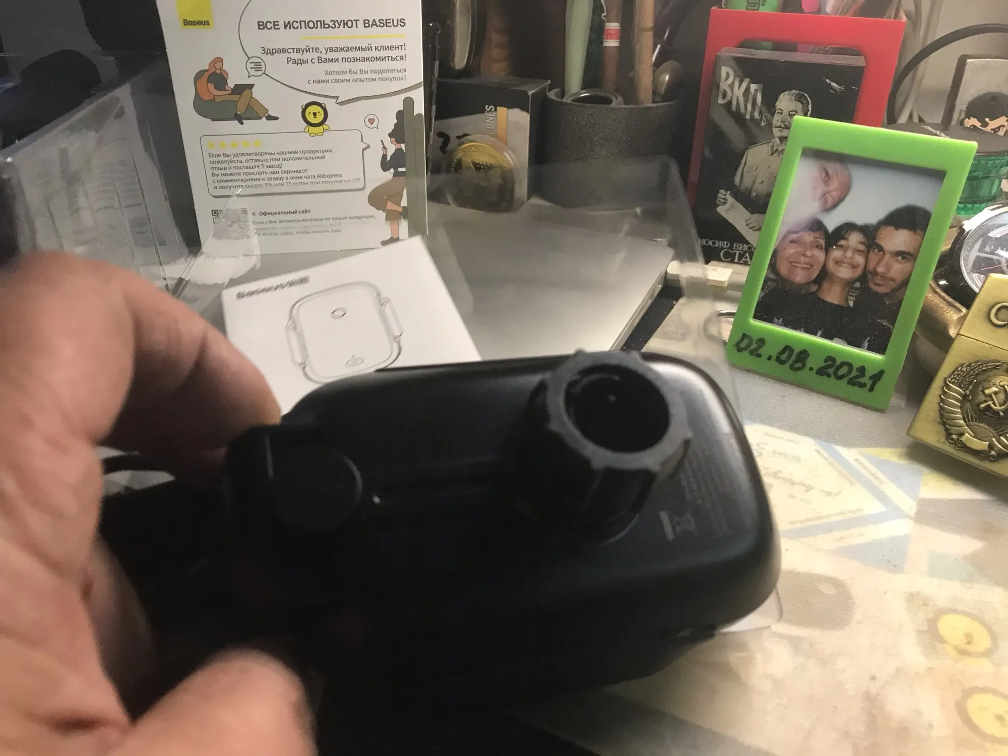 Convenient thing, I use the mount with the suction cup (on the frontal), the suction cup is glued perfectly, I would prefer a little more assistant-it's clear. But adjustable well. The backlight is useless (when the phone stands-it is not visible, and I put the phone in the holder immediately, as I sit down). I do not know how much the mechanism of the side legs will live, but so far it works well. In general, I recommend the charger. The order was brought in 3 days (from the Russian warehouse), it was one of the fastest deliveries.