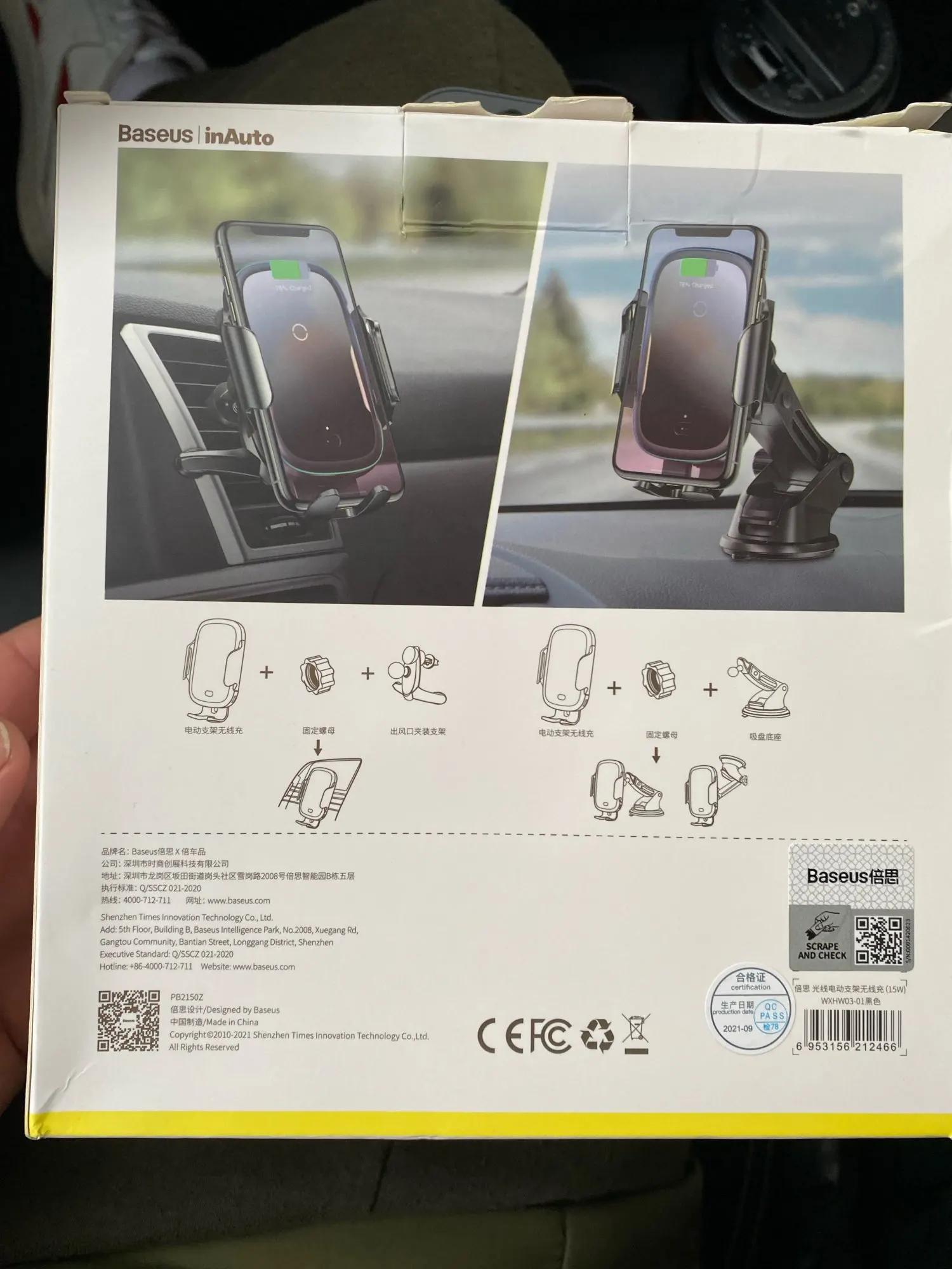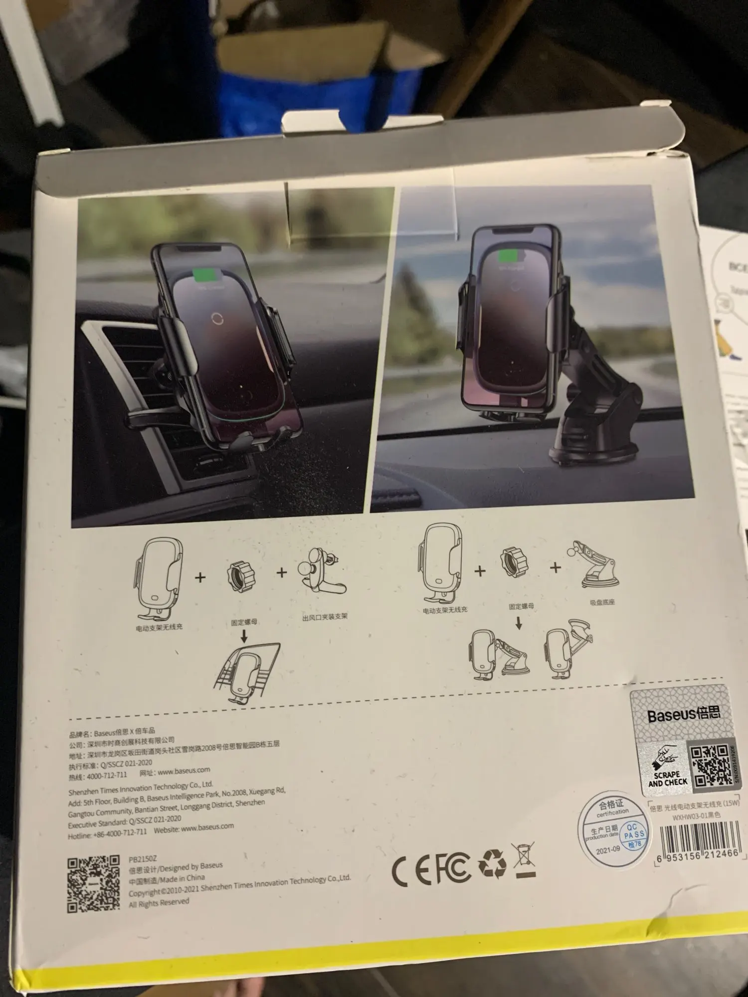 The product and very interesting. Was sent and arrived in 10 working days (Live in RJ) Both support suction cup as the pin output air are tight. Quality plastic not and premium, but an excellent cost benefit, as the price. The open and close automatic mechanism works very well, and the wireless charging work perfectly both a iPhone 11 as a Galaxy S21