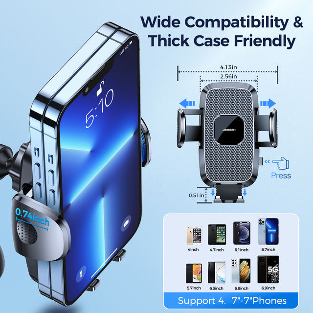 2.【Innovative 3 Exclusive Technologies】1) Extreme -40~212℉ temperature resistance: High purity TPU & KING plastic ”PTFE” with Nanotechnology; 2) NO.1 suction & stickiness: Exclusive epoxy resin adhesive synthetic technology, loads up to 44LBS, no marks left; 3) Big phones & thick phone cases friendly: High & arc clamps embrace mobile phones 3.5”-7.3” with thick cases securely, like battery/wallet case