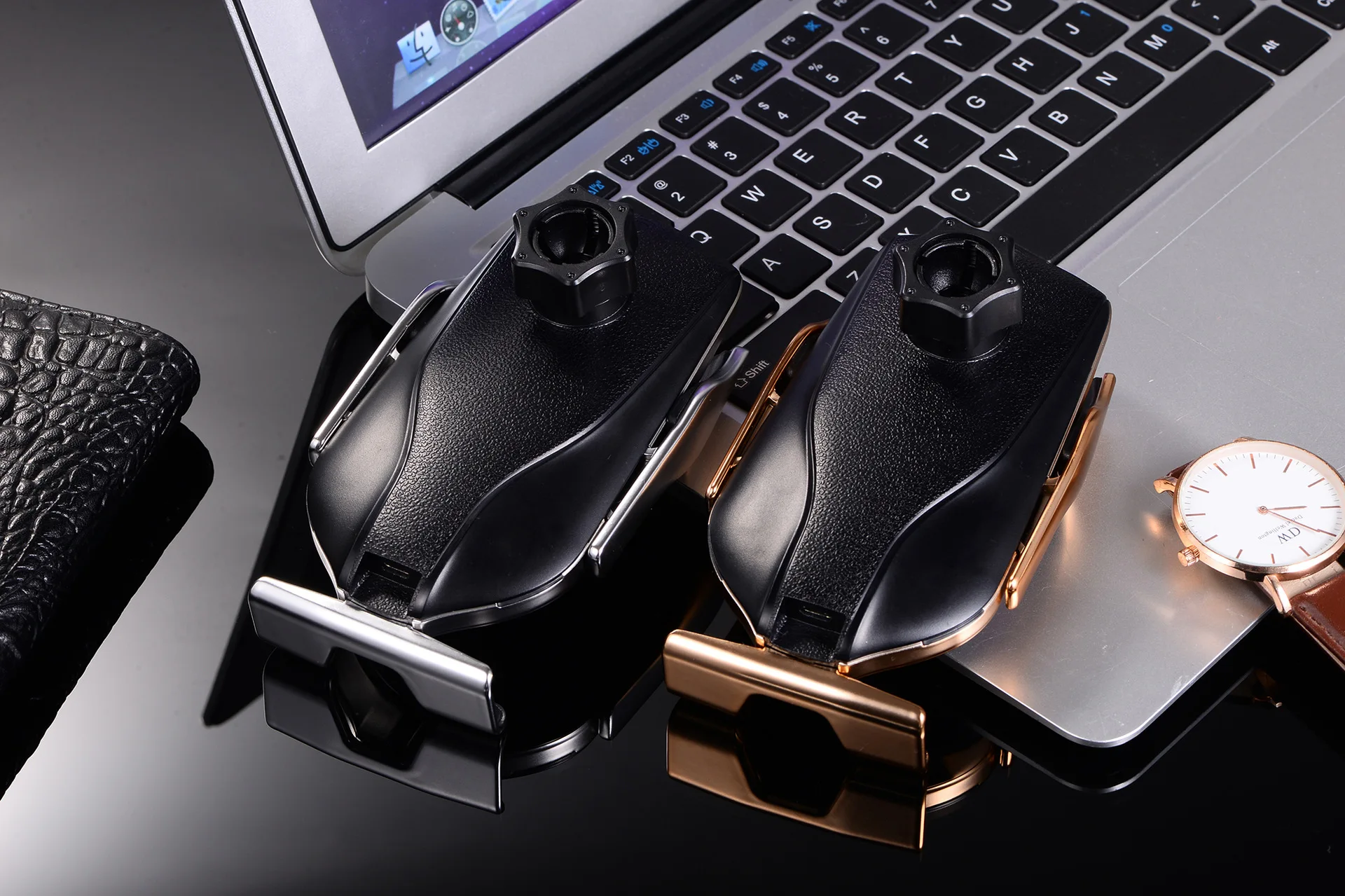 The holder is electric in the kit there is a taipsy wire, automatically opens, keeps tightly as on the move in the car will not know, without installation there are false tritriactions on