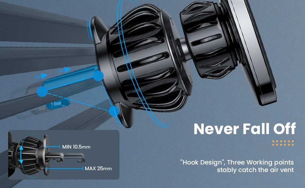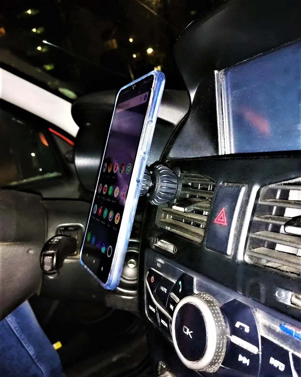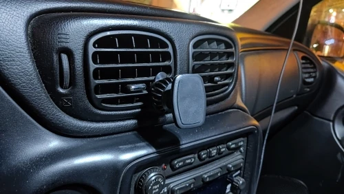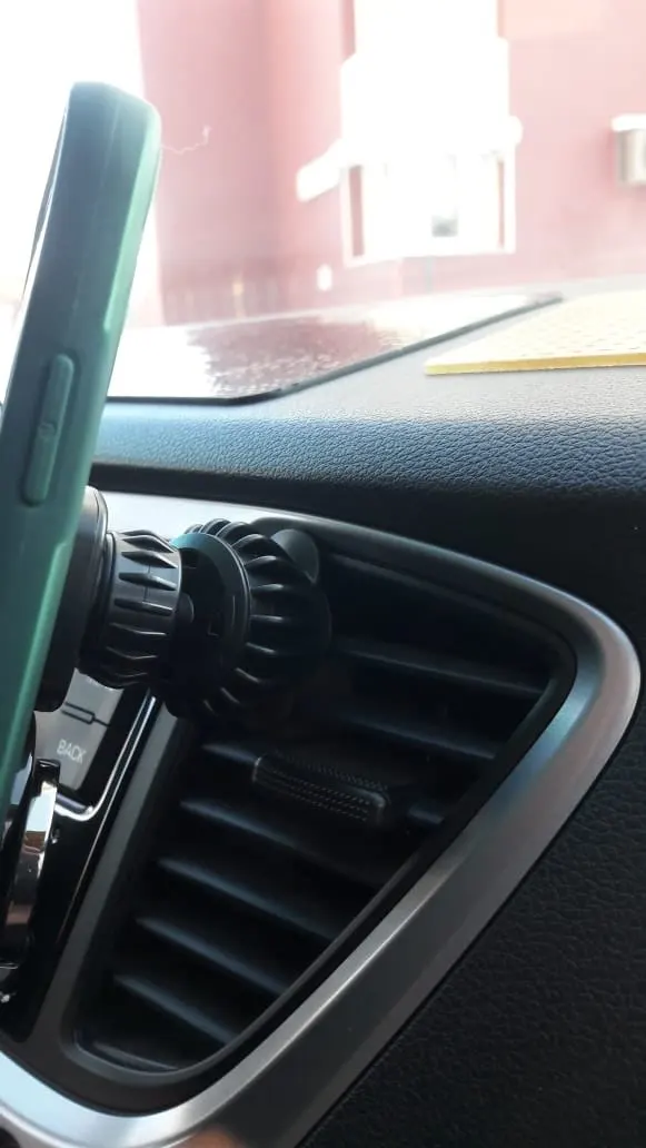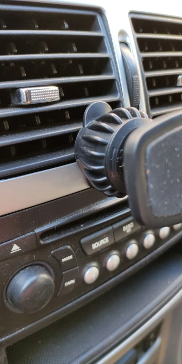 Great holder. The magnet holds very well. The main advantage is that you can Turn away from the deflector. Then the phone does not blow at all.