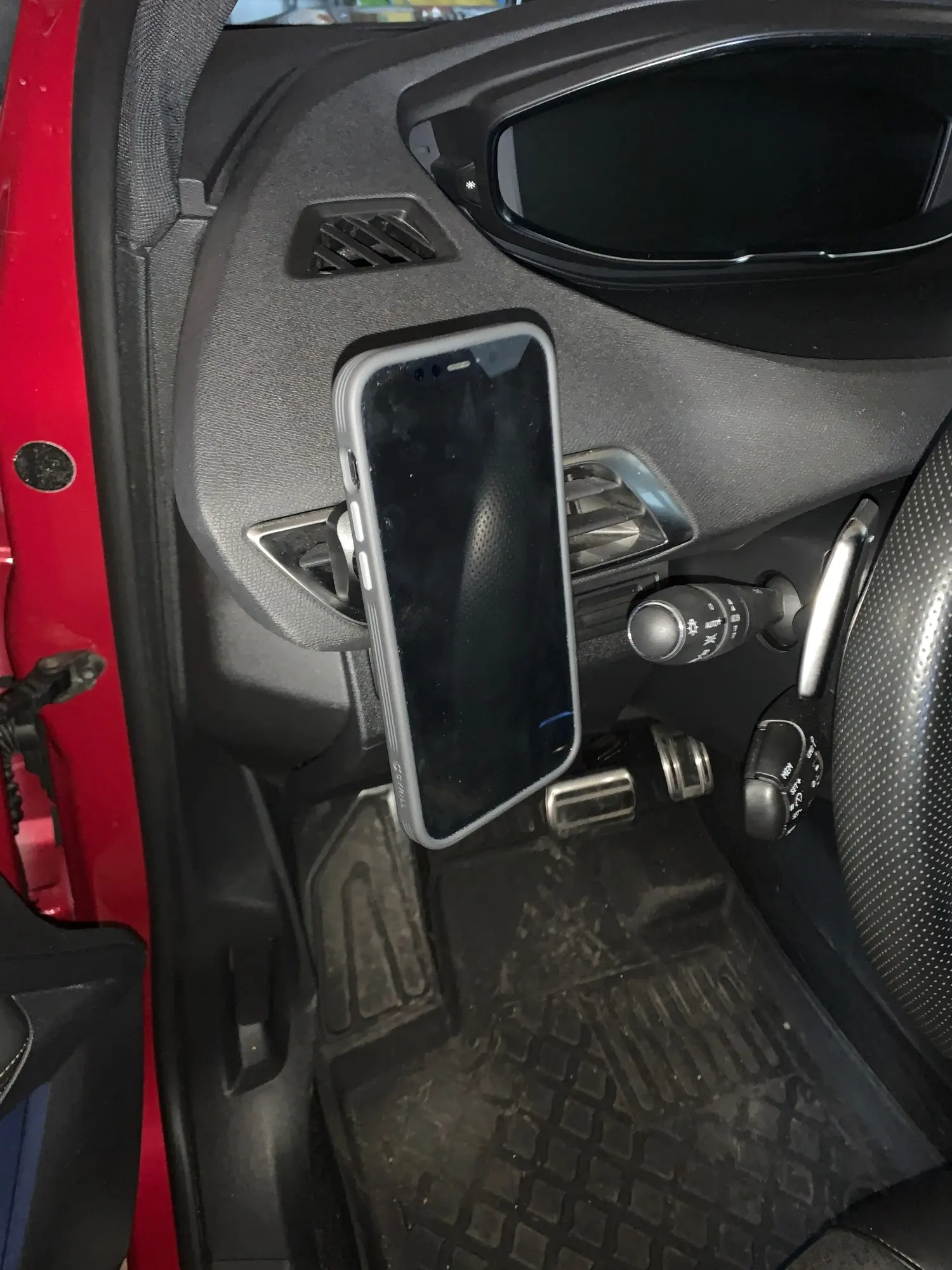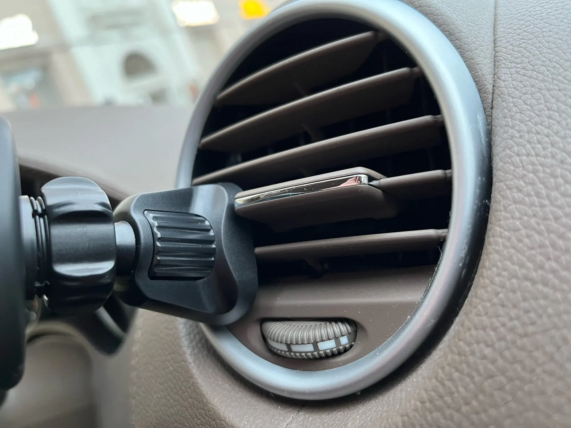 Just need to put it on the car’s outlet blades and adjust the length of clamp by turning the knob to match the outlet,