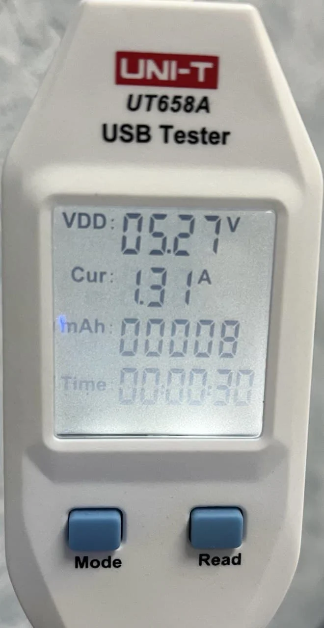 Power consumption 7 W. The output power (charging power) is much less (10% in 25 minutes). I checked for iPhone 13 and their same charging joyroom (the power supply is much higher naturally).
