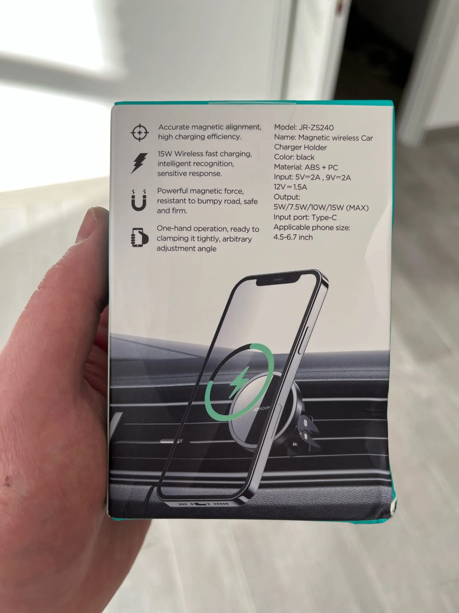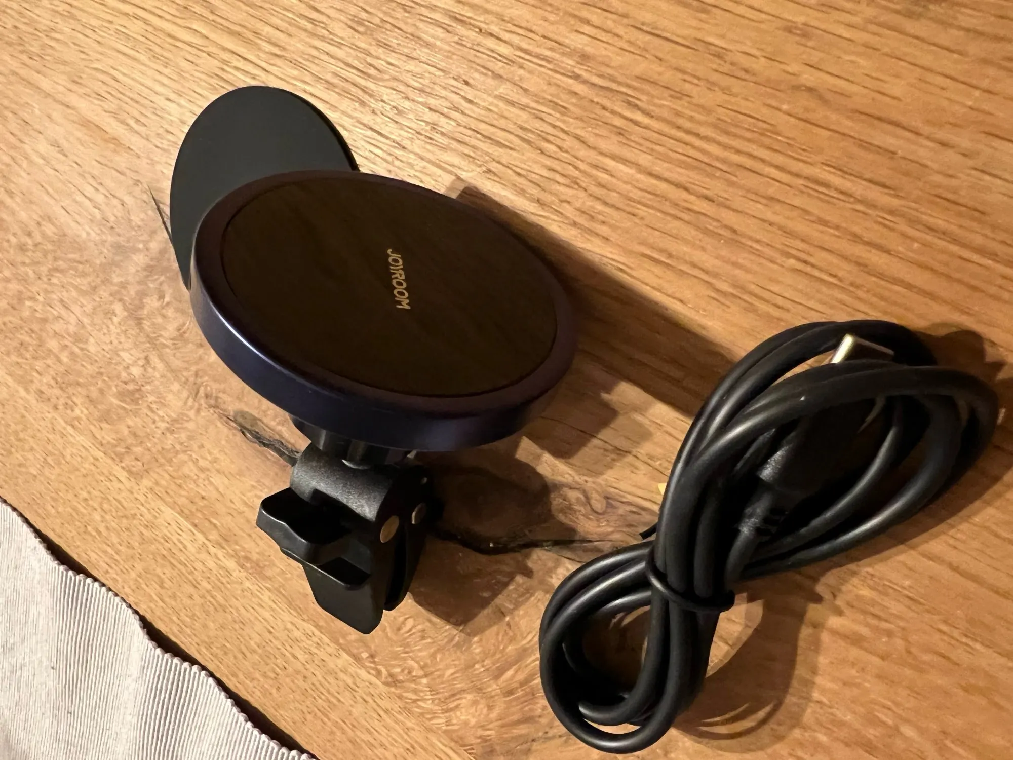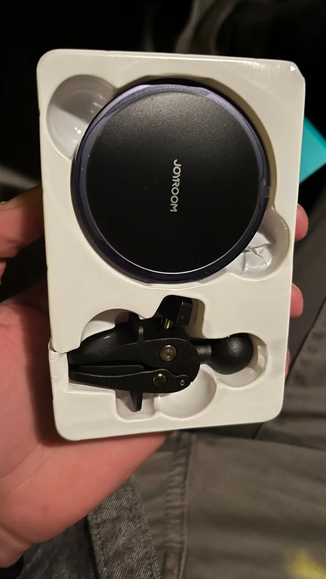 Fine phone holder for car with magnet and cable should. All complete and tidy delivered in a carton. Works top and magnet is very strong happy. Fat happy, have another loose magnet of JoyRoom ordered also for mn friend.