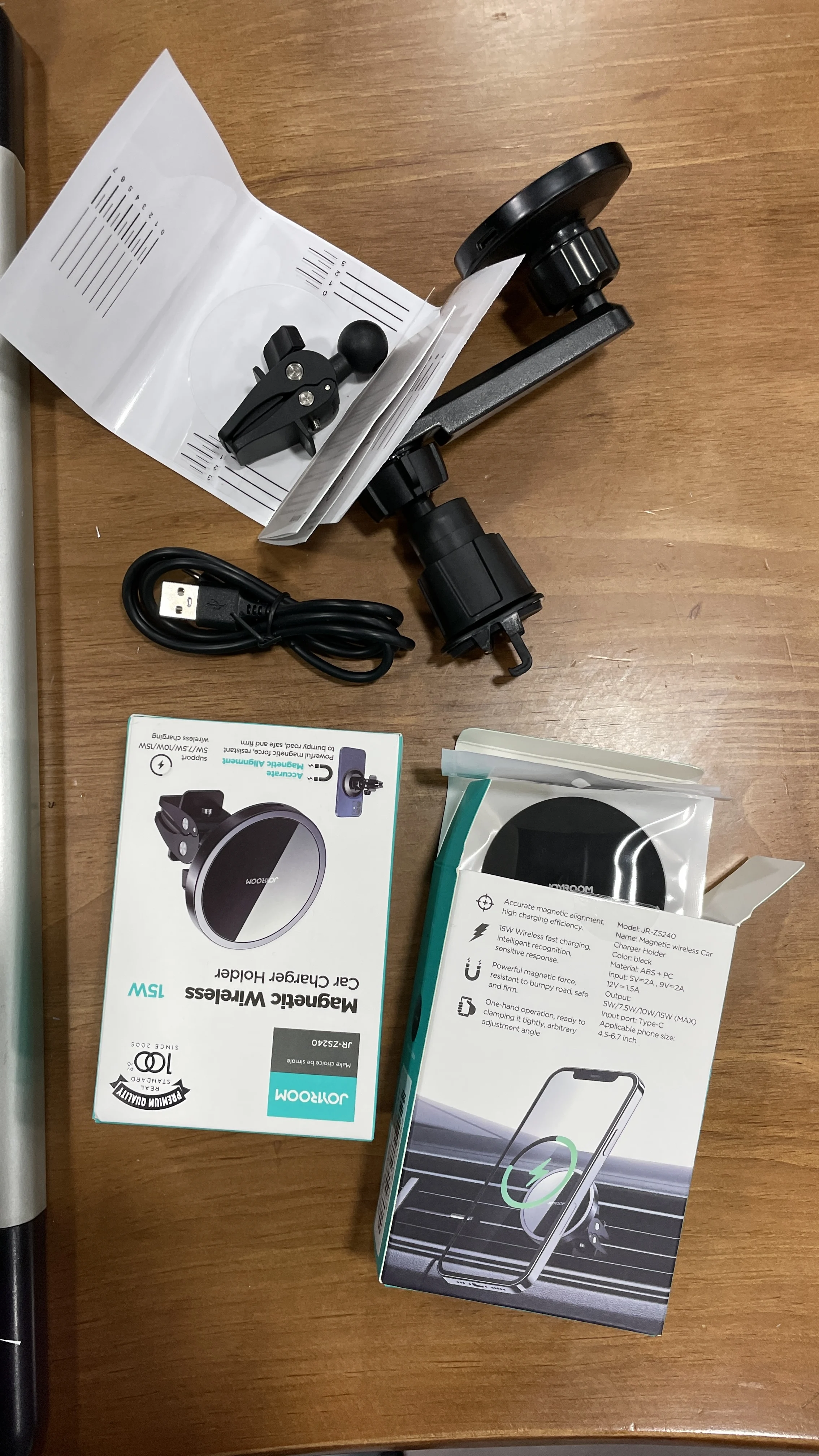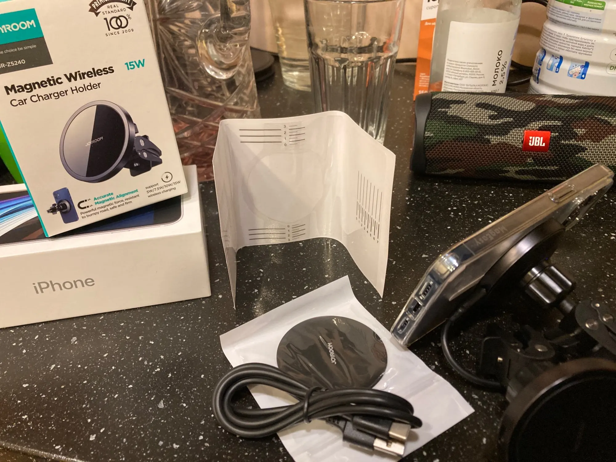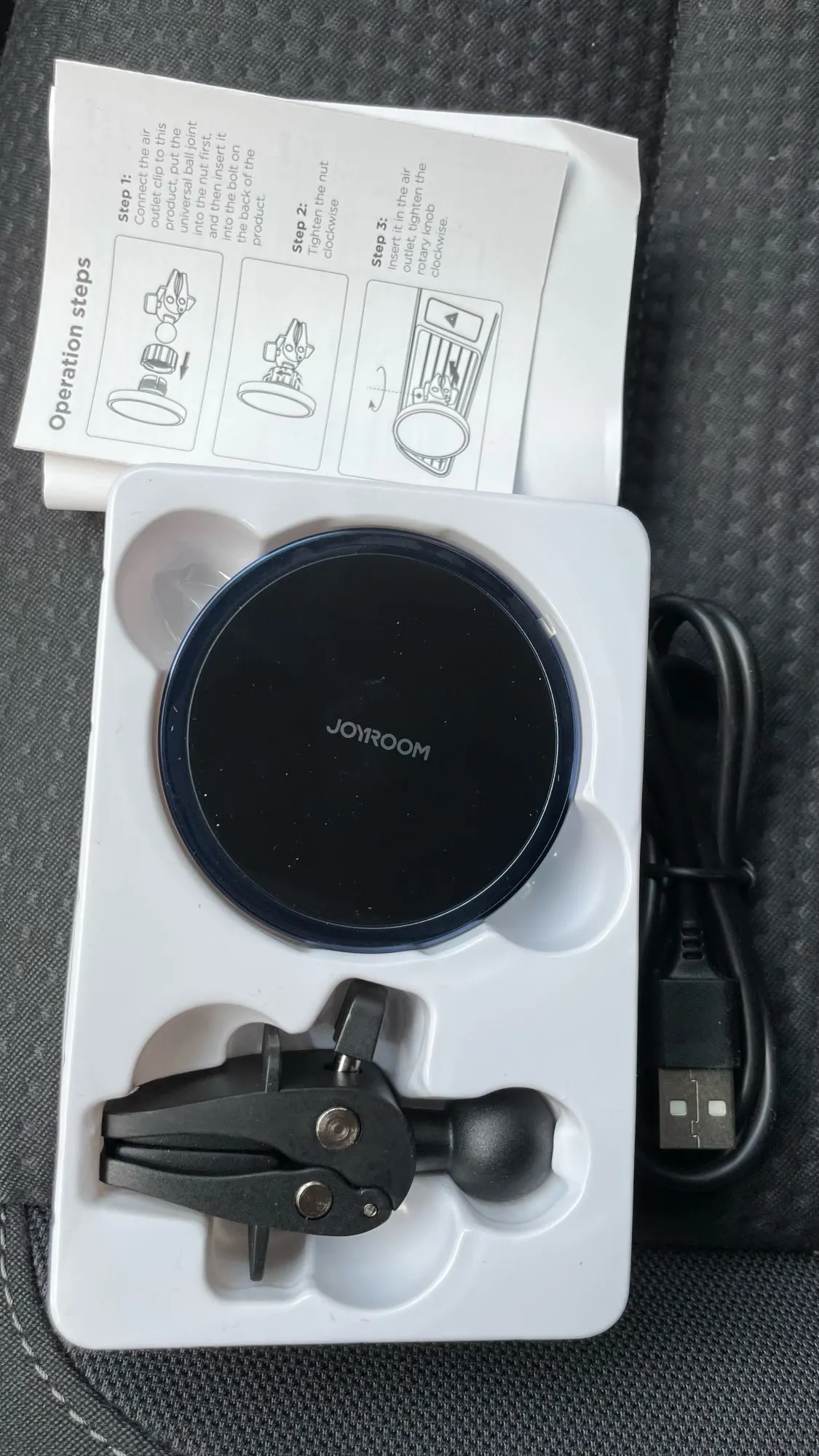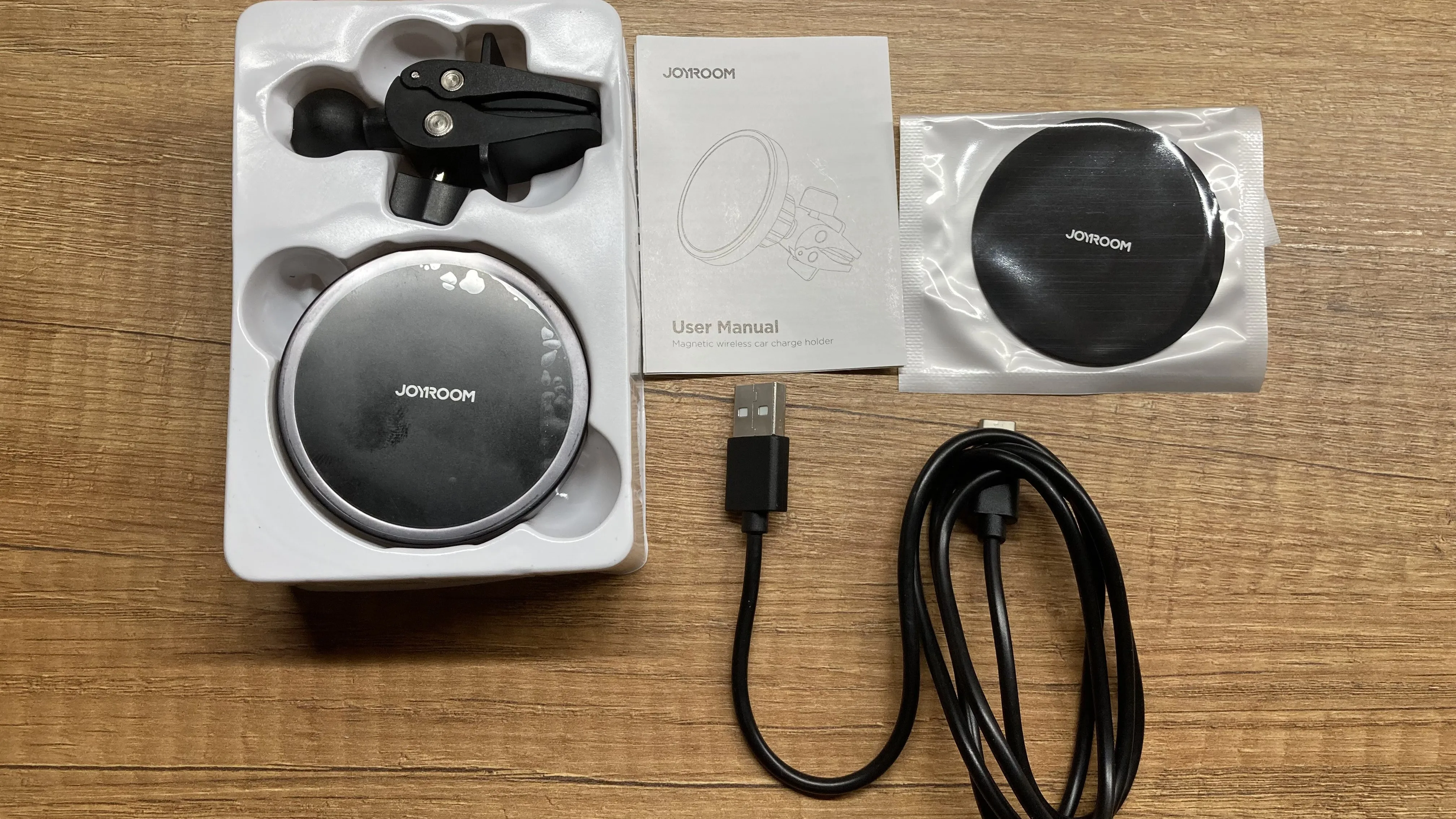 It came quickly, the holder looks great, tactile pleasant. In the kit there is a film and a magnet for the phone, a wire yusb-Taip with for wireless charging